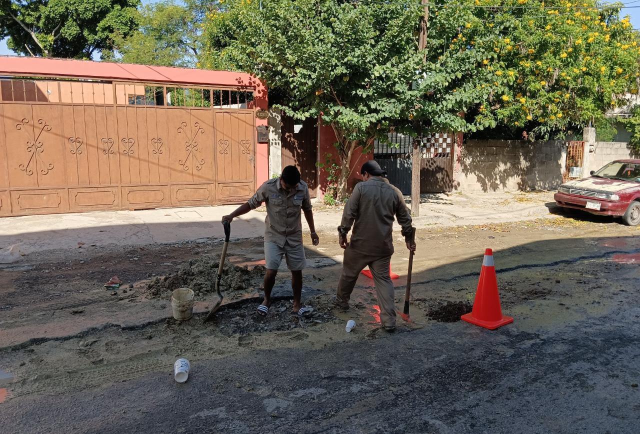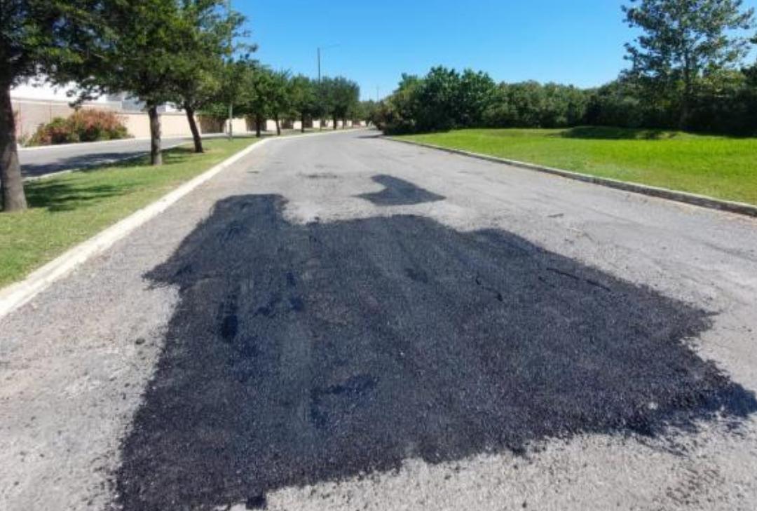 Mantiene trabajos de rehabilitación de pavimento asfáltico en las calles Morelos y Allende de la zona centro; así como de concreto hidráulico en calle Magnolia, Brígido y Mariano García de los fraccionamientos Cumbres y Sierra Ventana.