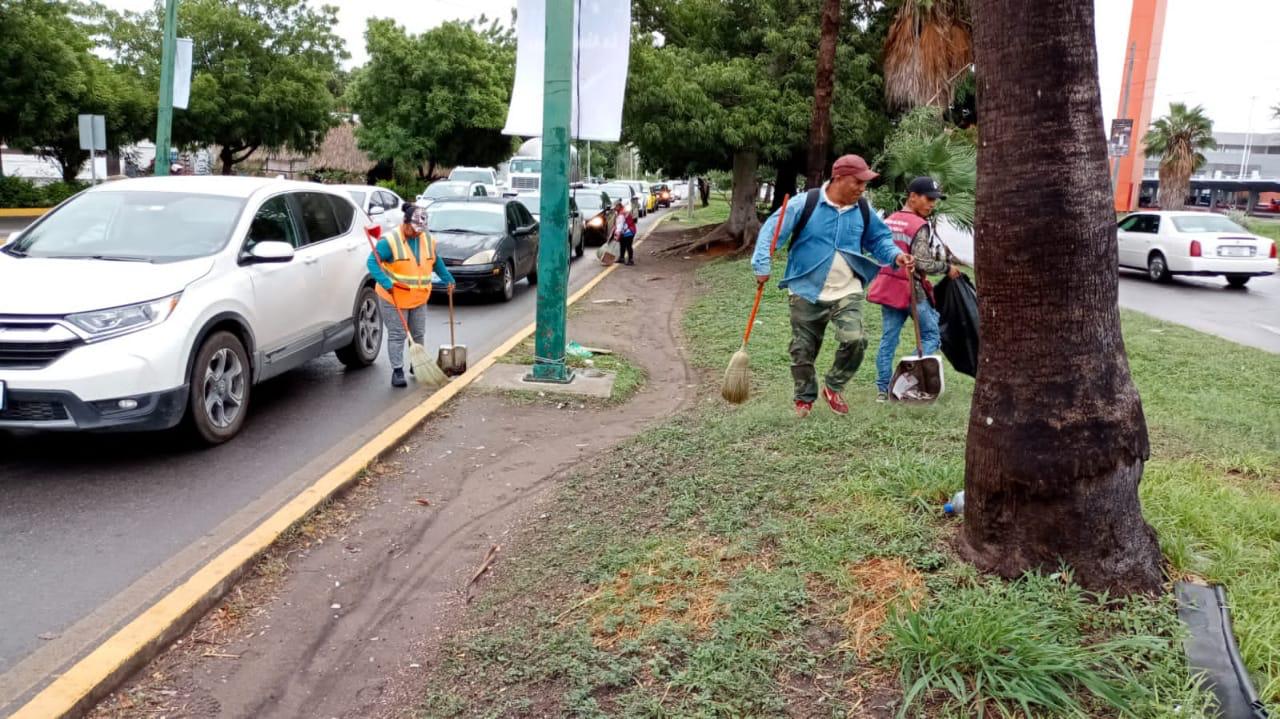 Amplio los trabajos de chapoleo y recolección de maleza en la plaza del 12 boulevard, Paseo Méndez y Avenida 17; así como a las áreas verdes del fraccionamiento Teocaltiche.