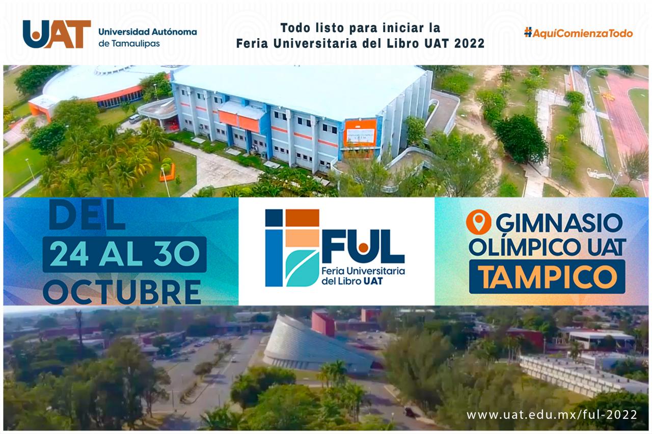 Con la participación de importantes figuras de la literatura, la música, la cultura y las artes en general, este lunes 24 de octubre inicia la Feria Universitaria del Libro (FUL UAT 2022), organizada por la Universidad Autónoma de Tamaulipas, cuyo evento se desarrollará en el Centro Universitario Tampico (Campus Sur).