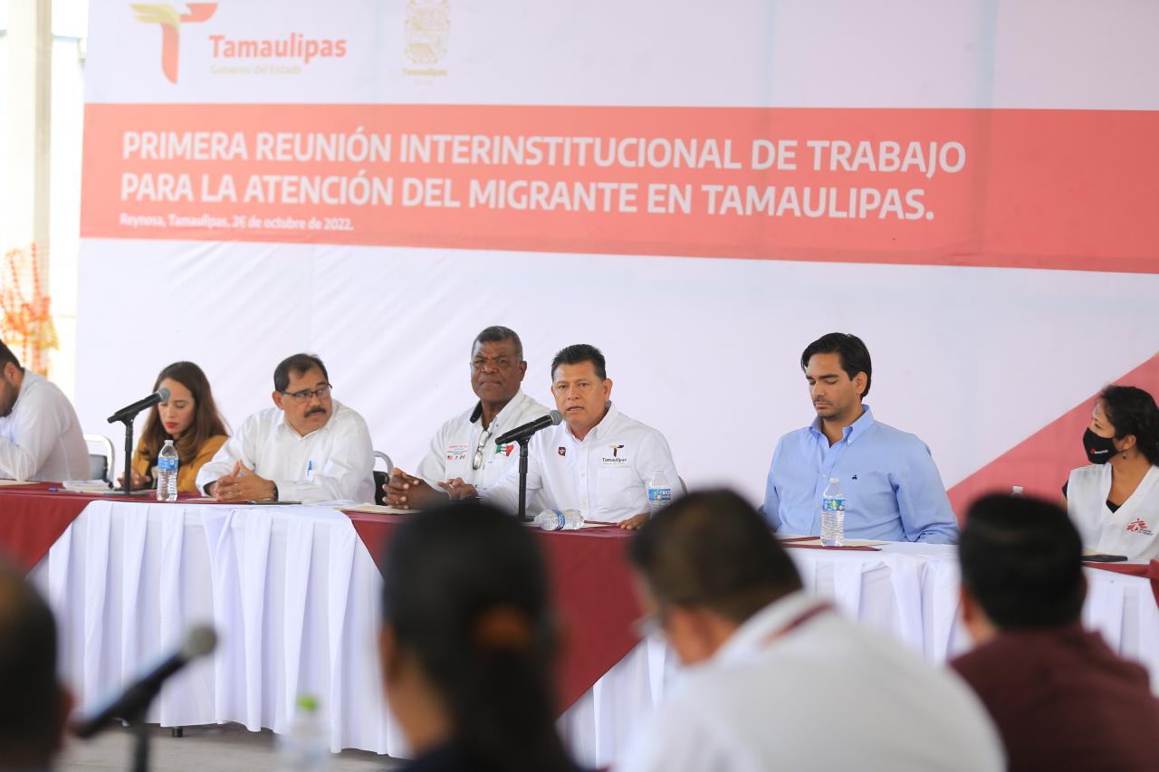 El subsecretario general de Gobierno, Tomás Gloria Requena expresó que la indicación del gobernador Américo Villarreal, es trabajar en coordinación con todas las dependencias federales, estatales y municipales para desplegar estrategias y acciones gubernamentales que ayuden a aliviar el fenómeno migratorio que se ha acentuado en ciudades fronterizas de Tamaulipas.