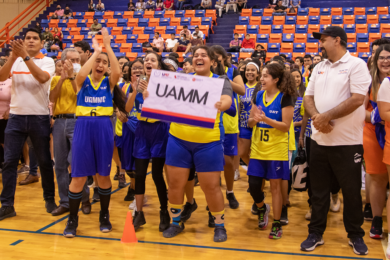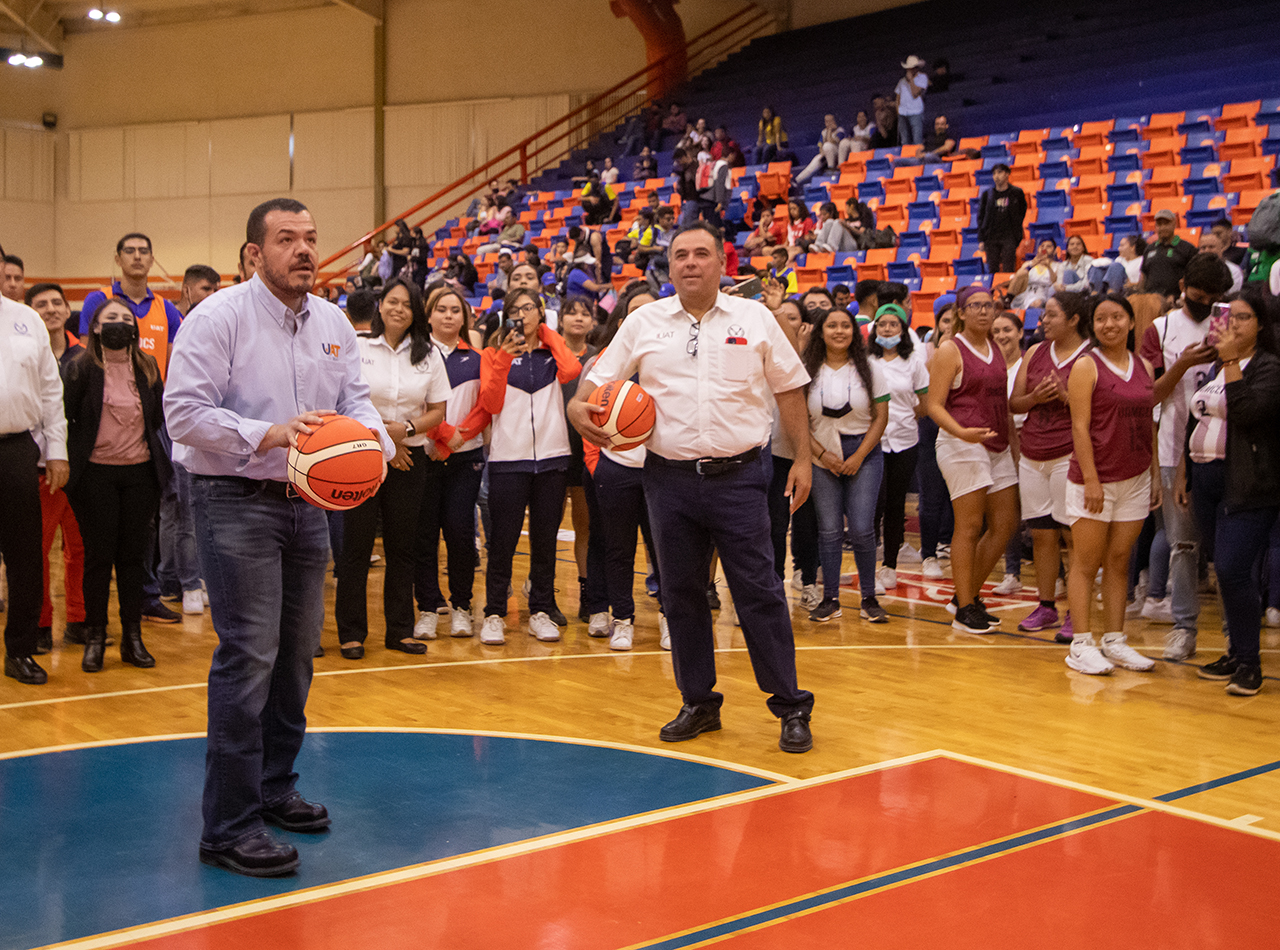 Luego de hacer la declaración oficial de apertura a los Juegos Deportivos Interfacultades, el rector se dirigió a la cancha de basquetbol para dar el saque inicial, que de manera simbólica pone en marcha la competencia, que será también la etapa de selección para los equipos y deportistas que representarán a la UAT en las eliminatorias para la próxima Universiada Nacional.