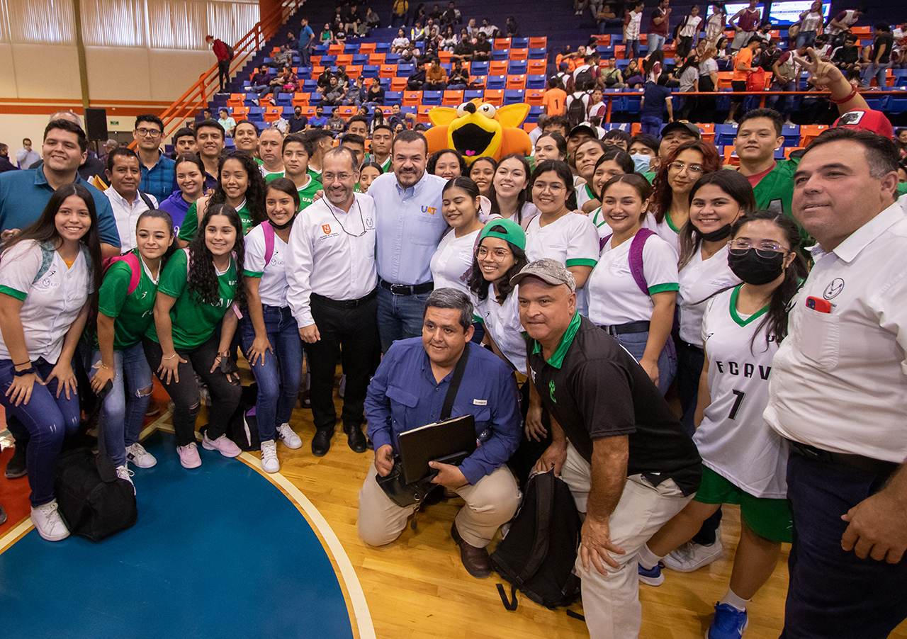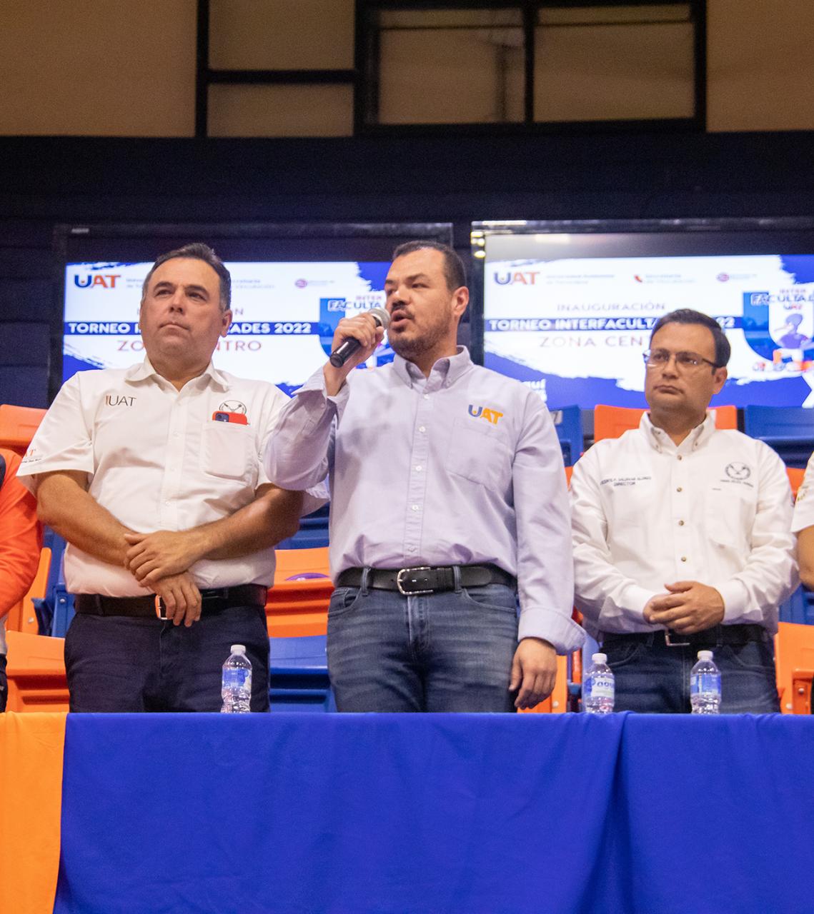 En su mensaje de apertura, el rector destacó la importancia de celebrar nuevamente la máxima justa deportiva estudiantil de la UAT. “Después de más de dos años de ausencia de este torneo, estamos muy contentos de verlos a todos aquí, pero, sobre todo, por lo que representa esta competencia, donde se defienden los colores de cada una de las facultades, que se da en un ambiente de amistad y compañerismo, siempre buscando ser los mejores”, indicó.