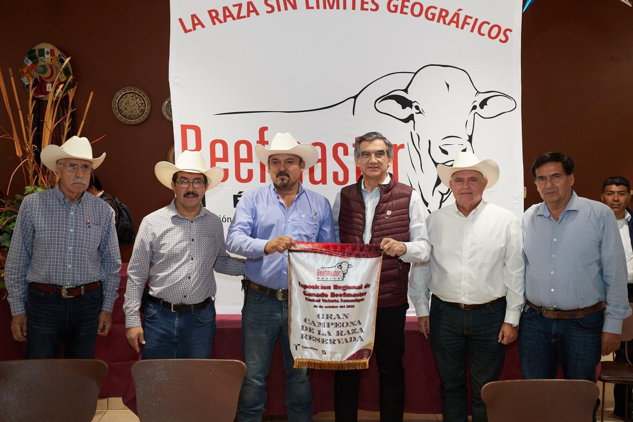 Al presidir la ceremonia de premiación a lo mejor de la exposición de ganado Beefmaster en el marco de la Feria Tamaulipas 2022, el gobernador aseguró que trabajará para la transformación de la producción ganadera y poder distinguir a la entidad en el escenario nacional.