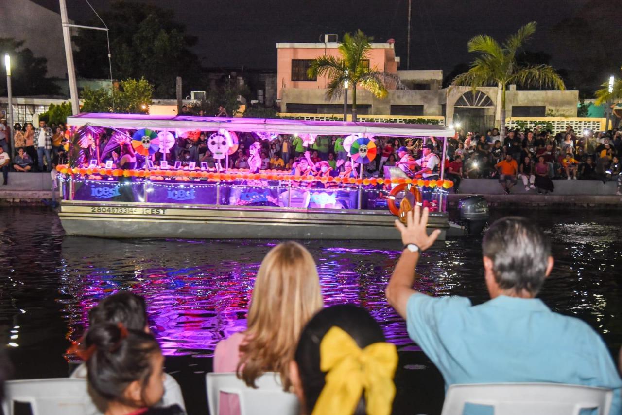 Los miles de asistentes además de admirar las embarcaciones ataviadas con motivos del Día de Muertos, tuvieron la oportunidad de disfrutar espectáculos artísticos y musicales instalados en puntos estratégicos del Paseo, así como el Concurso de Altares y Catrinas. La festividad significó también, un repunte para el comercio local.