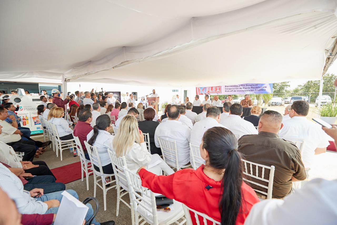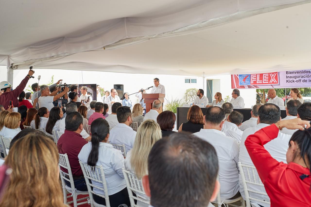 "Hoy, a nombre del Gobierno del Estado reitero ese compromiso; nos llena de orgullo y esperanza que podamos ver hacia adelante unidos concretando las enormes ventajas que tenemos para detonar nuestro crecimiento económico, con empresas de vanguardia en términos de innovación, de responsabilidad frente al medio ambiente y con una operación a la altura de las mejores del mundo como es la de ustedes y refrendamos nuestro compromiso de ofrecer las mejores condiciones para su operación y planes futuros de expansión", expresó. Tras cortar el listón inaugural de la planta recicladora en la que se han invertido 200 millones de dólares, generando mil empleos directos e indirectos y junto al director general de Flex Americas Om Prakash Mishra y del director de Ventas para México y Latinoamérica, Amit Miglani, el jefe del Ejecutivo destacó que la nueva visión y política en el área económica del estado, es alentar empresas que generen economía circular.