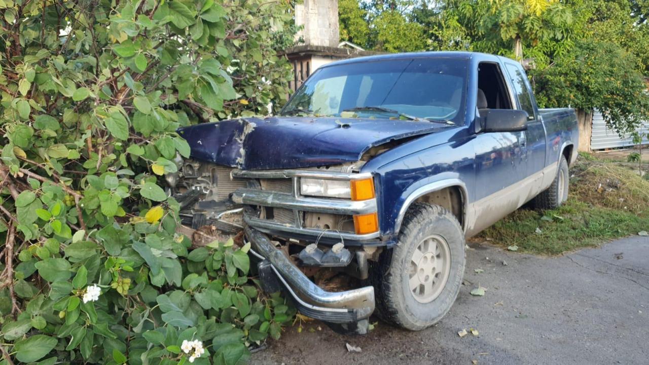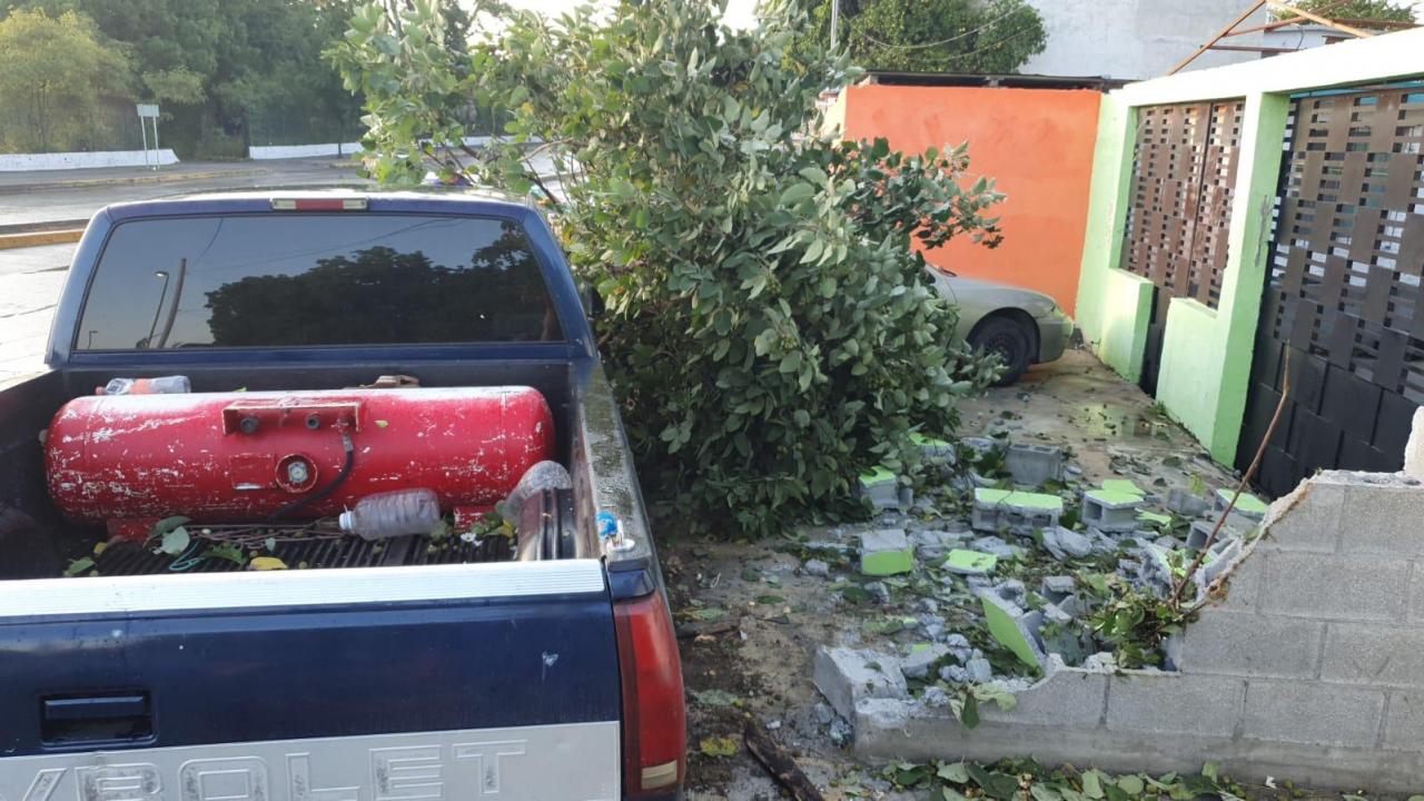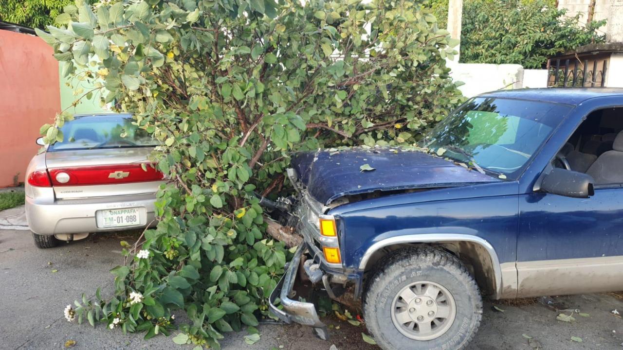 Después de chocar contra el automóvil Focus la camioneta arrancó un árbol y terminó su trayectoria al estamparse contra un muro de block.