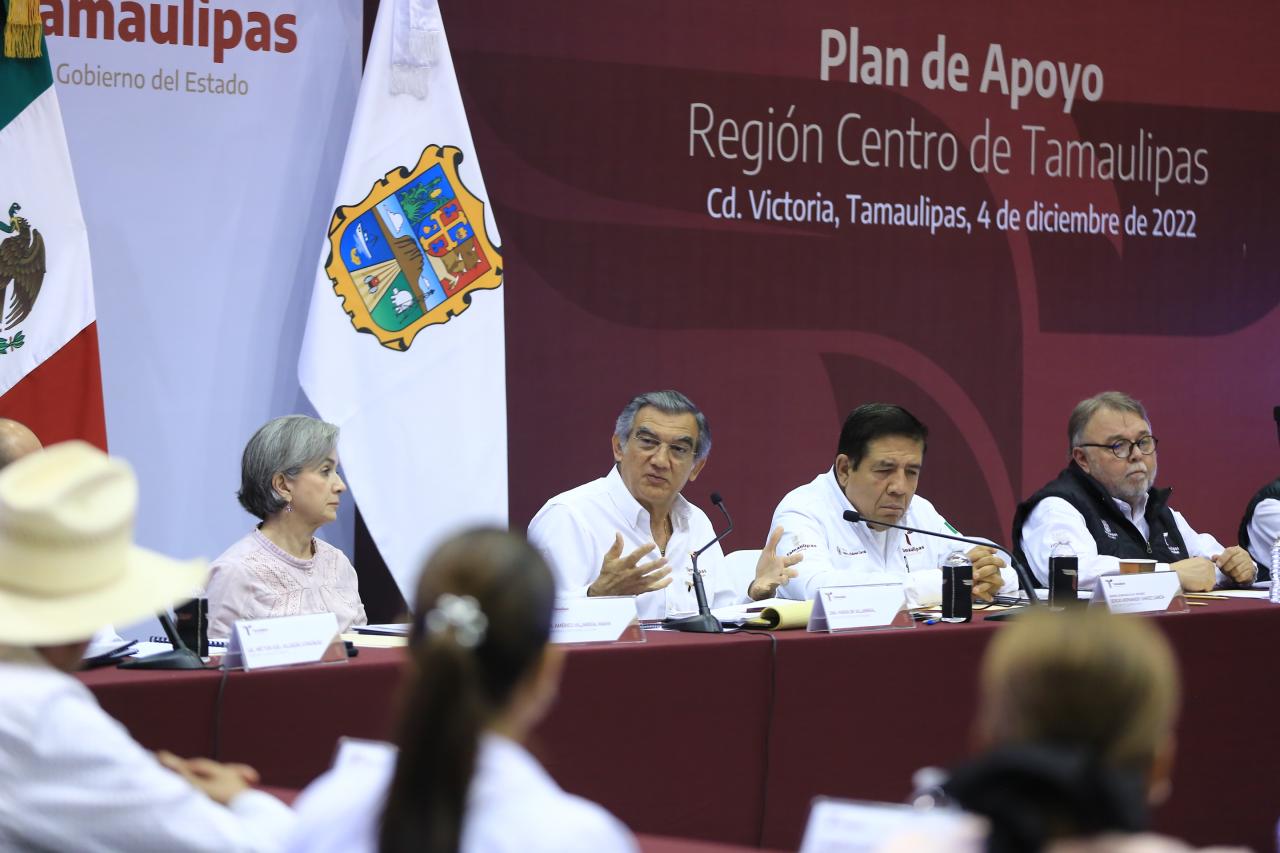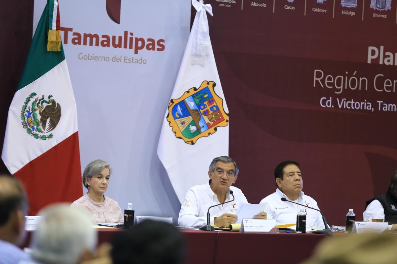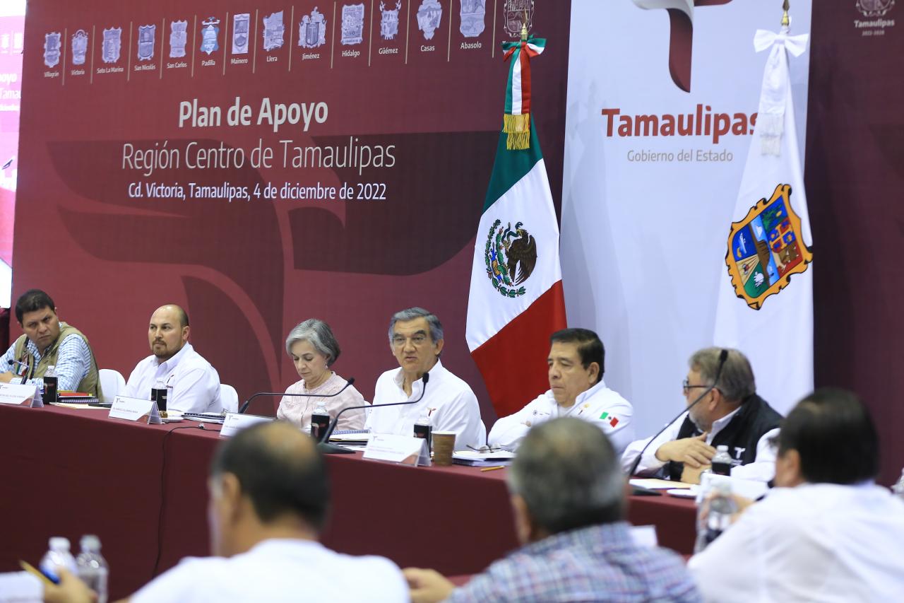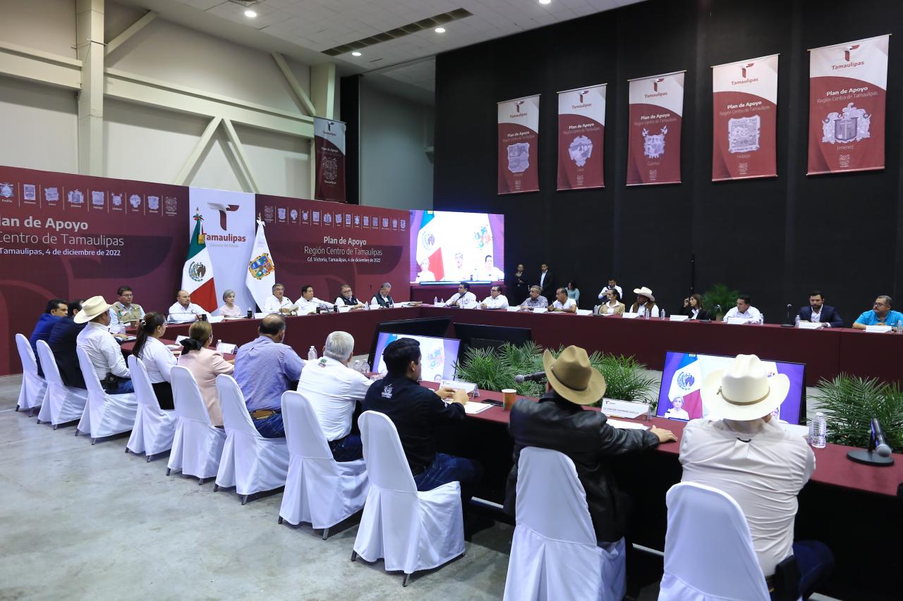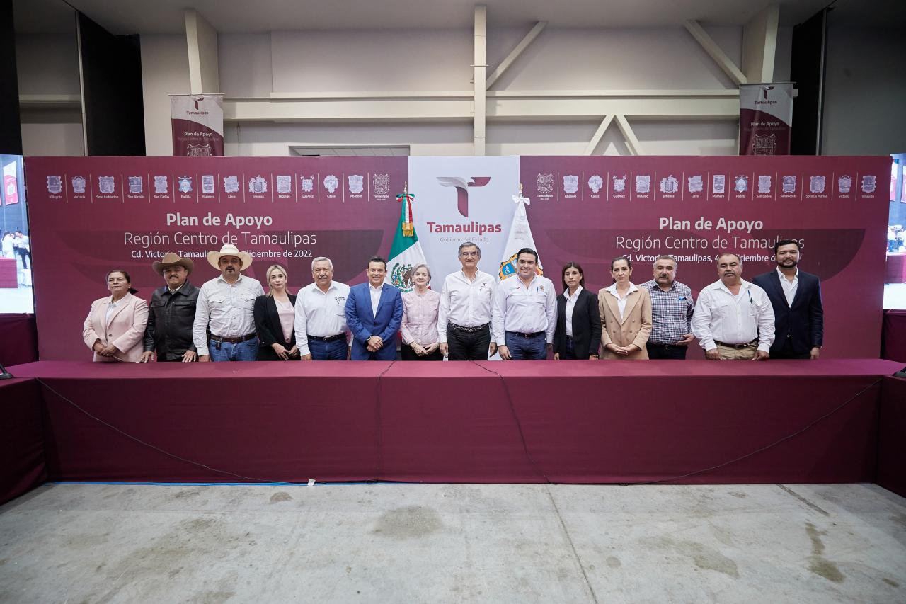 Al reunirse con 12 alcaldes y alcaldesas en la presentación del Plan de Apoyo a la Región Centro de Tamaulipas, este domingo en el Polyforum de Victoria, el gobernador del Estado junto con la presidenta del Sistema DIF estatal María de Villarreal y el gabinete legal y ampliado, aseguró que Tamaulipas y sus municipios están por encima de todo.