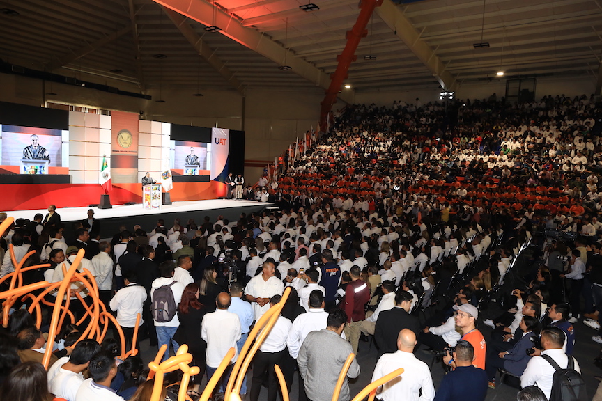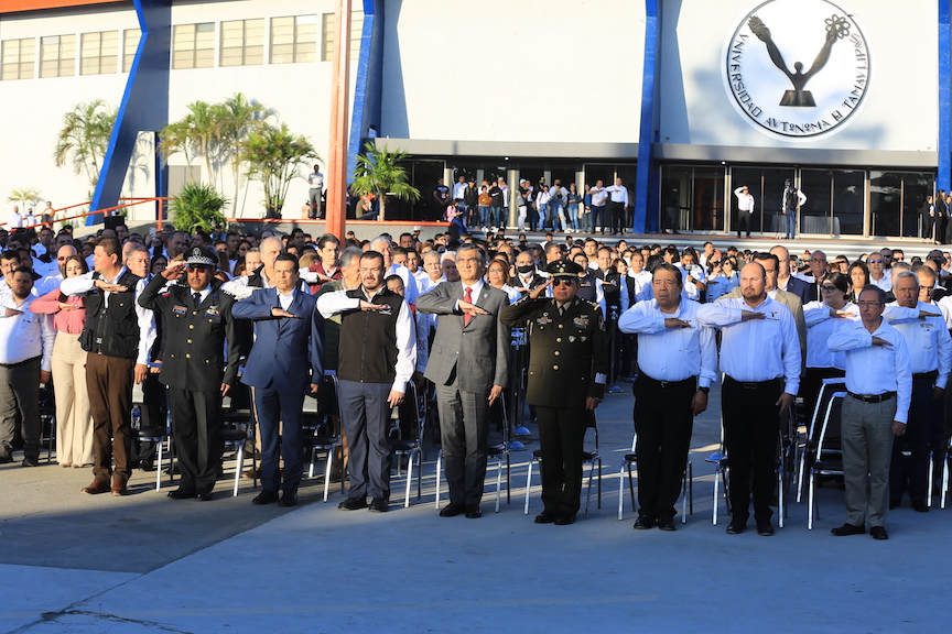 “Yo me comprometo hoy aquí con ustedes, en este emotivo evento y después de ver esta historia tan pródiga y de crecimiento y de avance en estos 72 años de esta hermosa Casa de Estudios de la Universidad Autónoma de Tamaulipas, para que todos los aquí presentes, formemos parte en este momento histórico de una nueva coyuntura en que creemos, una nueva forma de llevar las cosas a través de nuestra universidad y que digamos orgullosamente y a lo mejor alguien en 100 años pueda recordar y decir, esa generación fue la coyuntura que dio el cambio y el progreso sustantivo de lo que debe de estar haciendo la Universidad”, expresó.