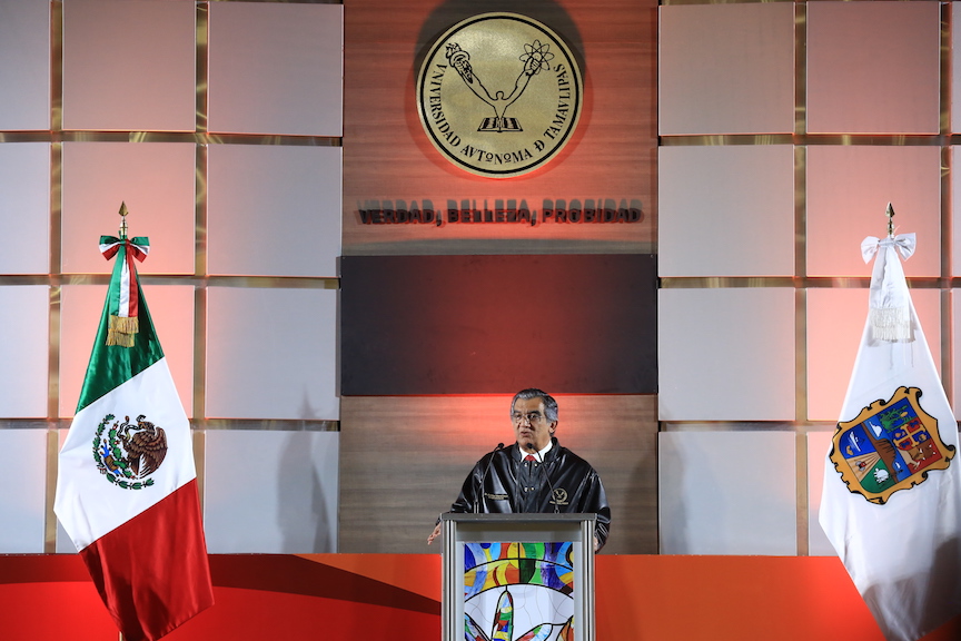 "Para recorrer este camino, tendrán a un aliado que desde el Gobierno de Tamaulipas les ofrece todo su respaldo para honrar la esencia de su lema de verdad, belleza y probidad y que estos sean valores que tengan más sentido en nuestra vida cotidiana y que su fiel observancia sea una razón de orgullo por Tamaulipas y por su Universidad", expresó.