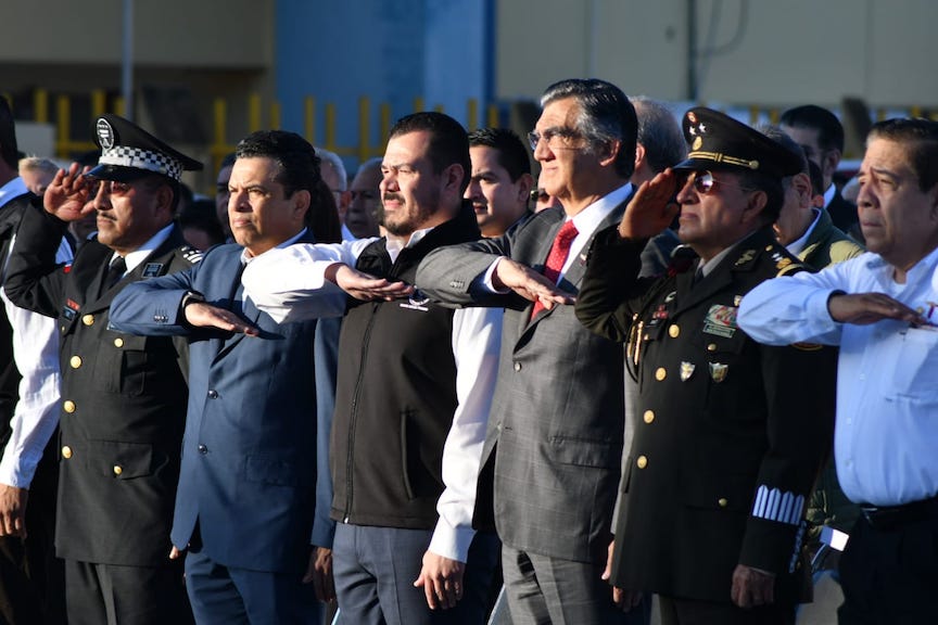 Acompañaron al gobernador, el general Elpidio Canales Rosas, Comandante de la 48a zona militar; el Comandante del 11o. Batallón de la Guardia Nacional, Inspector Germán Ángeles García; el secretario general de Gobierno, Héctor Joel Villegas; el delegado de Programas Federales para el Desarrollo, Luis Lauro Reyes; el alcalde Eduardo Gattás Báez; el secretario de Seguridad Pública, Sergio Hernando Chávez así como integrantes del gabinete estatal y funcionarios universitarios.