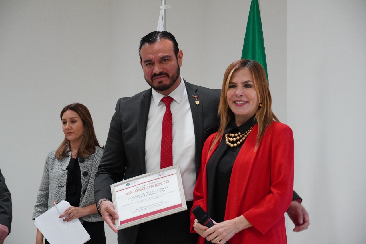 Ciudad Victoria, Tamaulipas.- La Universidad de Seguridad y Justicia de Tamaulipas, recibió un reconocimiento por parte del Comité Estatal de Participación Ciudadana del Sistema Estatal Anticorrupción, por incorporar los temas de anticorrupción y transparencia en los planes académicos y de formación continua.