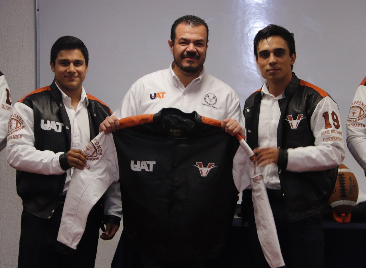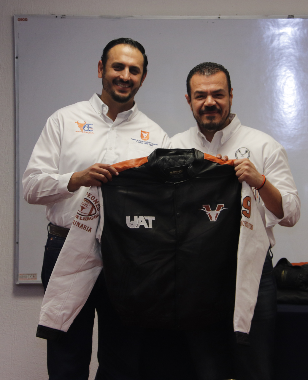 El C. P. Guillermo Mendoza Cavazos, rector de la Universidad Autónoma de Tamaulipas, entregó las chamarras conmemorativas al equipo Cuernos Largos de la Facultad de Medicina Veterinaria y Zootecnia Dr. Norberto Treviño Zapata (FMVZ), por haber conseguido el campeonato de la Liga Universitaria de Futbol Americano (LUFAUAT) en su edición 2022.