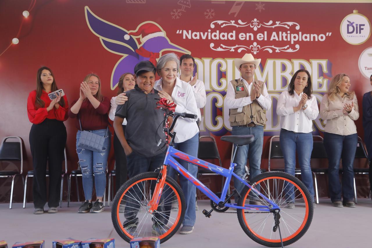 Palmillas, Tamaulipas. -Con piñatas, dulces, música y regalos, llegó la Navidad al Altiplano, evento que contó con la asistencia de cientos de familias de Jaumave, Miquihuana, Bustamante, Tula y Palmillas, siendo una actividad, que se llevó a cabo con los Mensajeros de Paz del Sistema DIF Tamaulipas que preside la doctora María de Villarreal.