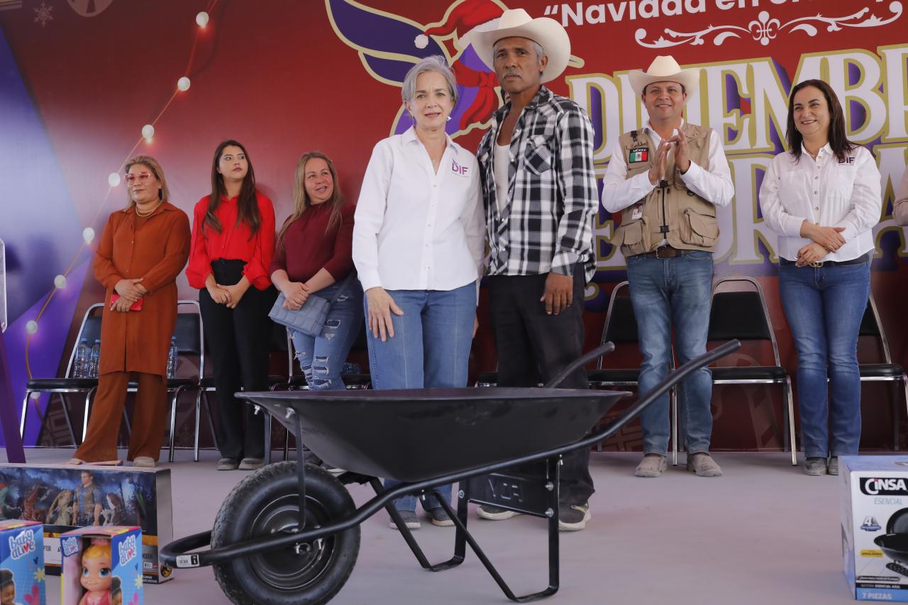 Como parte del festejo, se hizo entrega de casi cuatrocientos regalos, entre tinacos, estufas, colchones, baterías de cocina, vajillas, bicicletas, molinos, balones, muñecas, carretillas, picos y poseras, entre otros beneficios, que fueron distribuidos entre los casi 2 mil asistentes.