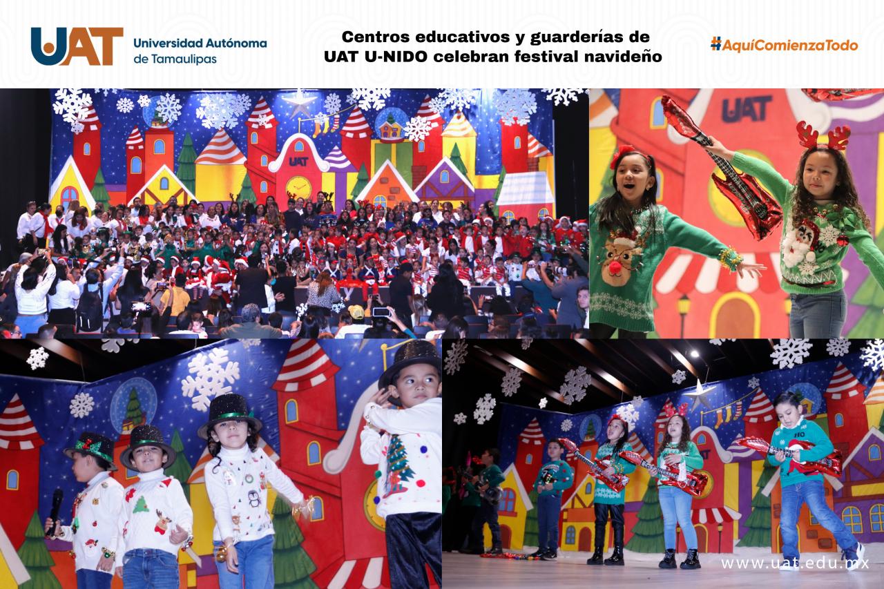 Con la participación de alumnos de las etapas maternal, lactantes, preescolar y juvenil de la Universidad Autónoma de Tamaulipas (UAT), las estancias infantiles y centros educativos de Victoria que forman parte del grupo UAT U-NIDO realizaron el festival Unidos en Navidad, donde alrededor de cuatrocientos alumnos presentaron emotivos números artísticos.