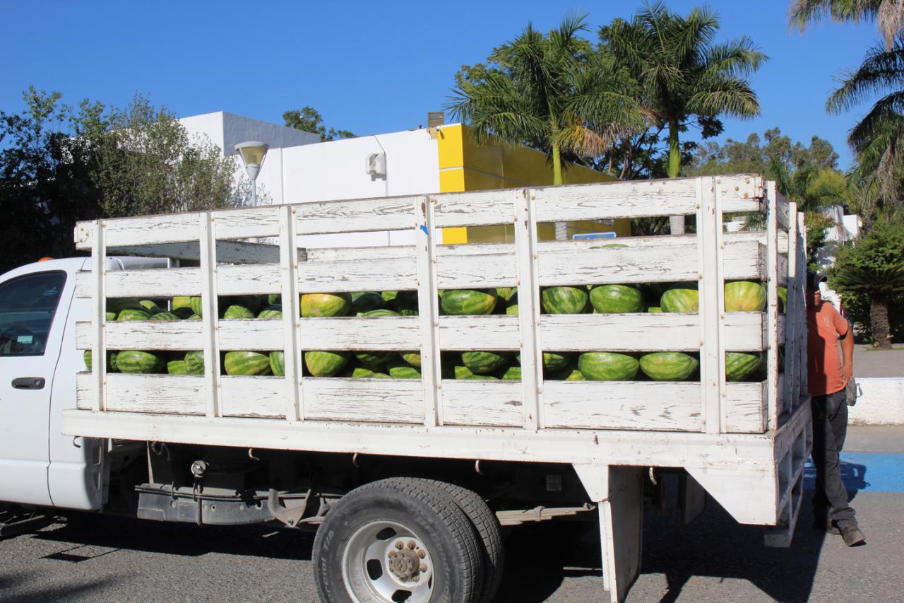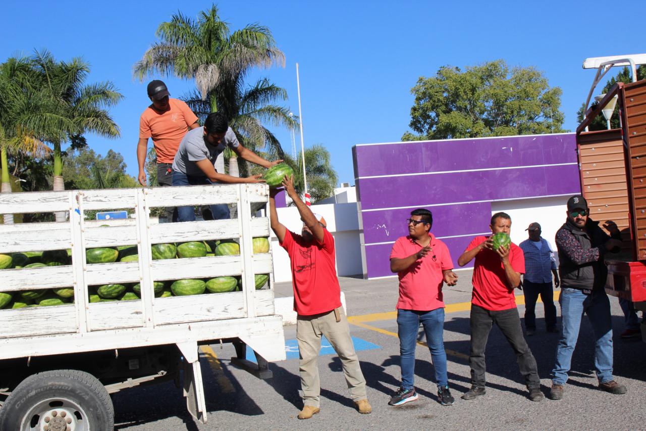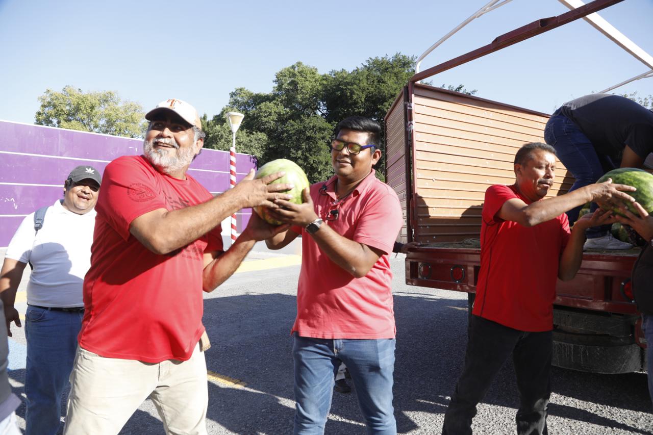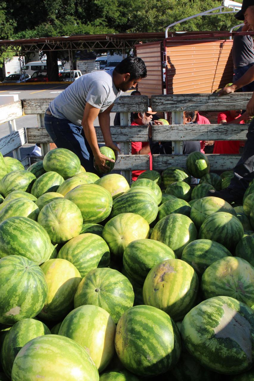 Ciudad. Victoria, Tamaulipas .-Dando seguimiento al Plan de Apoyo a los municipios que puso en marcha el gobernador del Estado Americo Villarreal, el Sistema para el Desarrollo Integral de la Familia de Tamaulipas, presidido por María de Villarreal, ha dispersado 9 toneladas de sandía, provenientes de productores tamaulipecos.