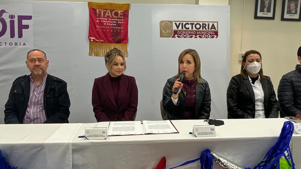 Ciudad Victoria, Tamaulipas.-Siguiendo las instrucciones del Gobernador Américo Villarreal Anaya, de fortalecer los sectores más vulnerables, el Instituto Tamaulipeco de Capacitación para el Empleo (ITACE), firmó un convenio de colaboración con el DIF Victoria.