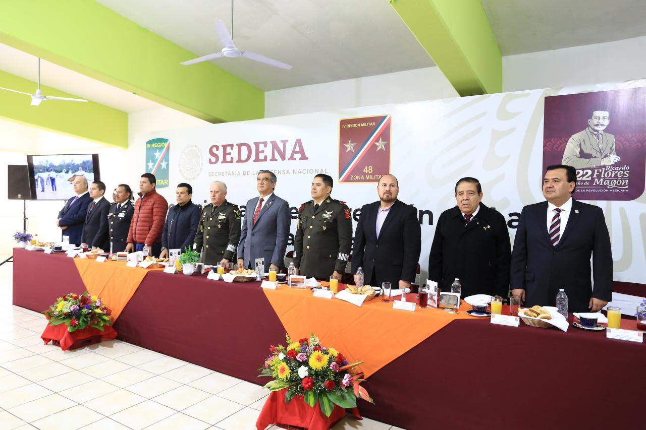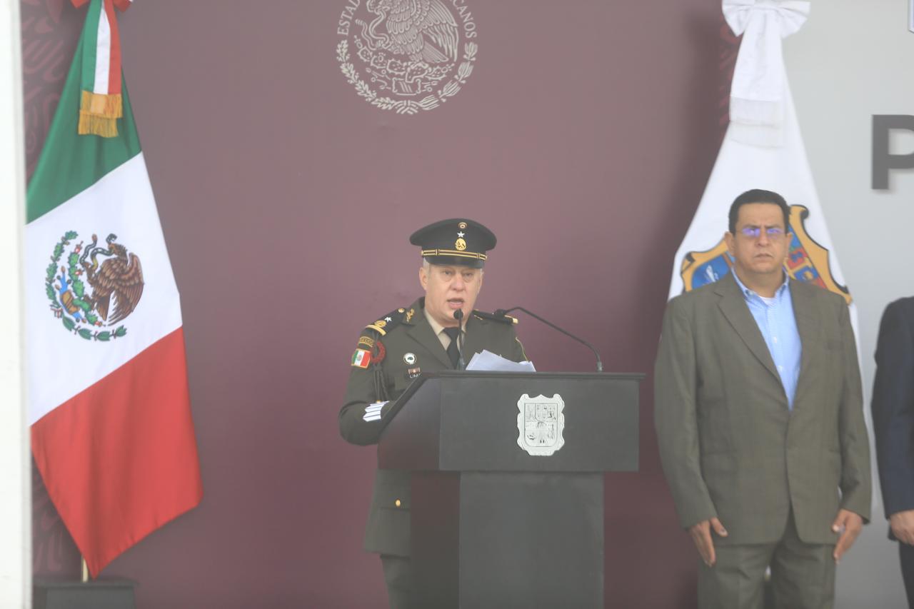Tras hacer mención de los antecedentes históricos del Ejército, que han hecho posible las grandes transformaciones y que tienen origen en un acto de lealtad a la Patria, que no debe de olvidarse, el gobernador Villarreal Anaya enfatizó, “ hoy en la 4ta Transformación pugnamos porque recupere su espíritu original”.
