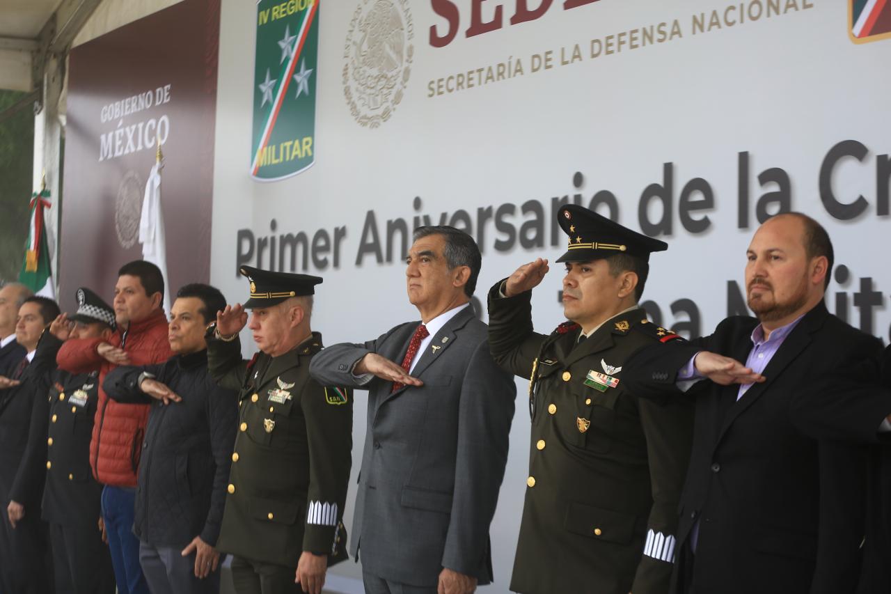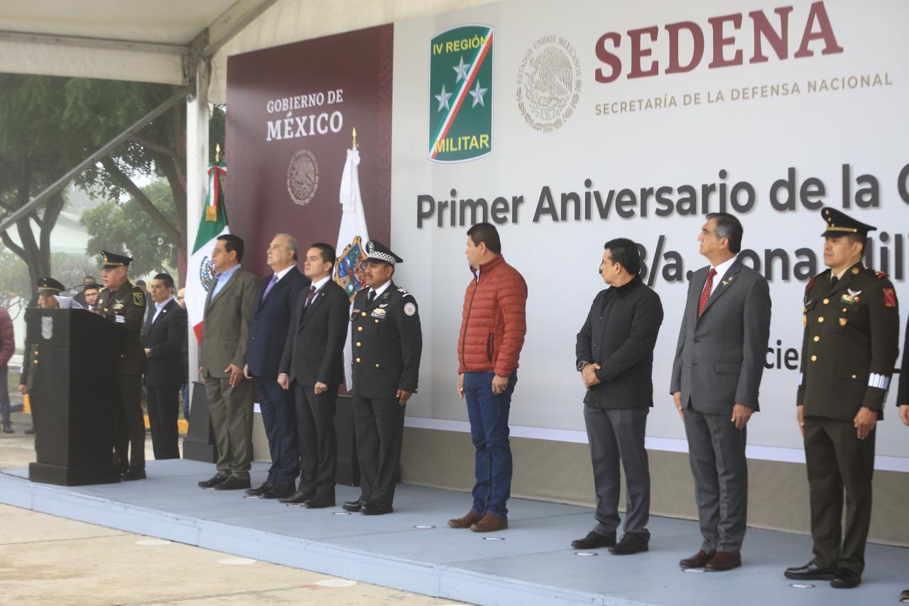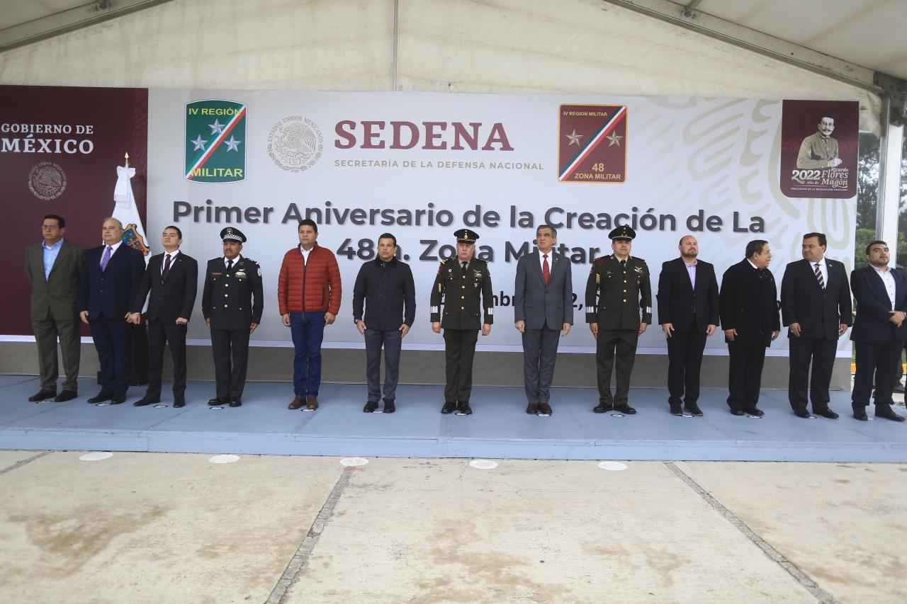 Ante la presencia del general brigadier DEM Fernando Lima Cuauhxochilt, jefe de estado mayor de la 48/a Zona Militar, quien presidió la ceremonia del primer aniversario, la cual pasó revista de entrada el primero de diciembre de 2021, también destacó la labor del Ejército en obras sociales y apoyo comunitario como las sedes del Banco del Bienestar, que son claves para la dispersión de recursos de los programas sociales del presidente.