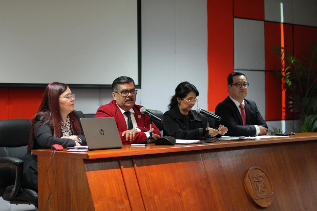 Las actividades dieron inicio con la mesa de diálogo denominada “La consolidación del proceso penal acusatorio oral con base en los principios constitucionales”, en la cual participaron como ponentes el Mtro. Patricio Lugo Jaramillo, la Dra. Minerva Cáceres Vázquez y el Dr. Juan Plutarco Arcos Martínez, y como moderadora la Mtra. Celina Elizabeth Delgado Hernández.