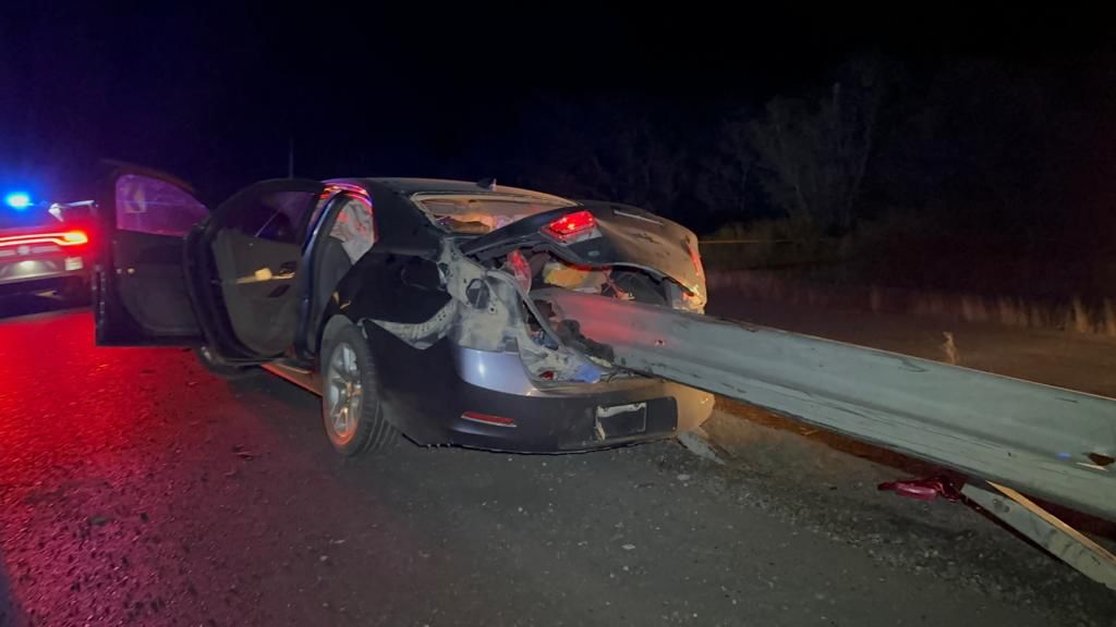 Tras el impacto la barra metálica de contención atravesó todo el automóvil, quedando incrustado desde la parte del motor hasta “salir” por la cajuela.