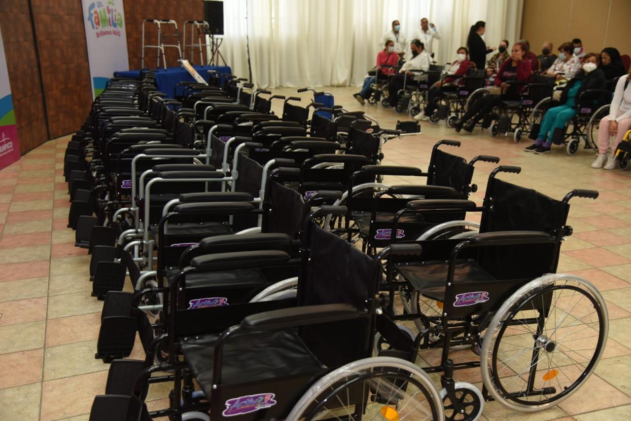 La titular del organismo detalló que la entrega consistió en 42 sillas de ruedas, seis muletas, tres bastones, tres andadores, cinco sillas para ducha, tres sillas-cómodo, un nebulizador, un glucómetro, tres baumanometros, 24 botes de leche, y 81 paquetes de pañales para niño y adulto.