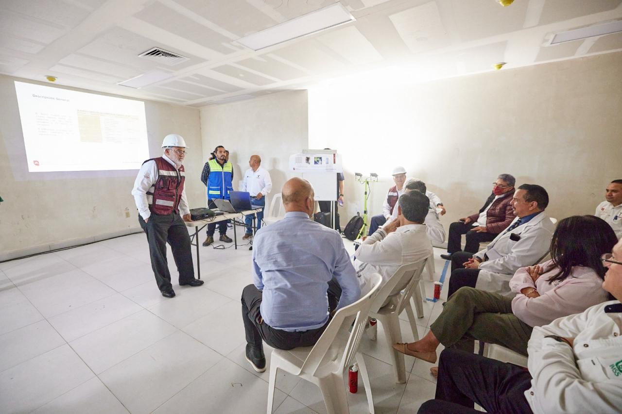 Ciudad. Madero, Tamaulipas.-El Gobernador del Estado Américo Villarreal Anaya, en compañía de Zoé Robledo Aburto, director general del IMSS y el secretario de Obras Públicas del Estado Pedro Cepeda Anaya en gira realizada por el sur de la entidad, visitaron el nuevo hospital de Ciudad Madero, actualmente con trabajos de valoración y análisis para la elaboración de un proyecto estructural para reparar las fallas de ingeniería con las que fue recibido el pasado mes de octubre, por la presente administración.