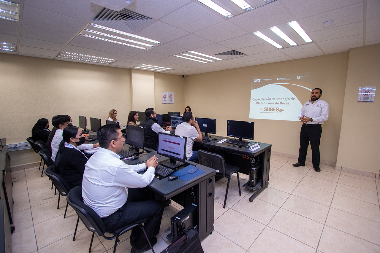 La Universidad Autónoma de Tamaulipas (UAT) llevó a cabo la capacitación de personal operativo de unidades académicas, facultades y escuelas preparatorias en torno a los nuevos lineamientos y cambios en las plataformas dedicadas a la gestión de becas tanto internas como externas.