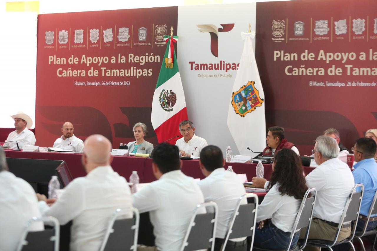 En la presentación del Plan de Apoyo a la Región Cañera, cuya mesa de trabajo estuvo moderada por el secretario general de Gobierno, Héctor Joel Villegas González, también tomaron parte, los titulares de la Oficina de Representación de Tamaulipas, en la Ciudad de México y en el Estado de Nuevo León, Fernando Centeno Sierra y Miguel Ángel Valdez García, respectivamente, así como el delegado federal, Luis Lauro Reyes Rodríguez.