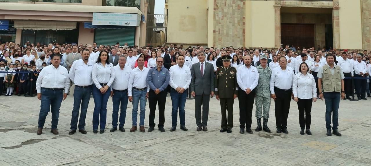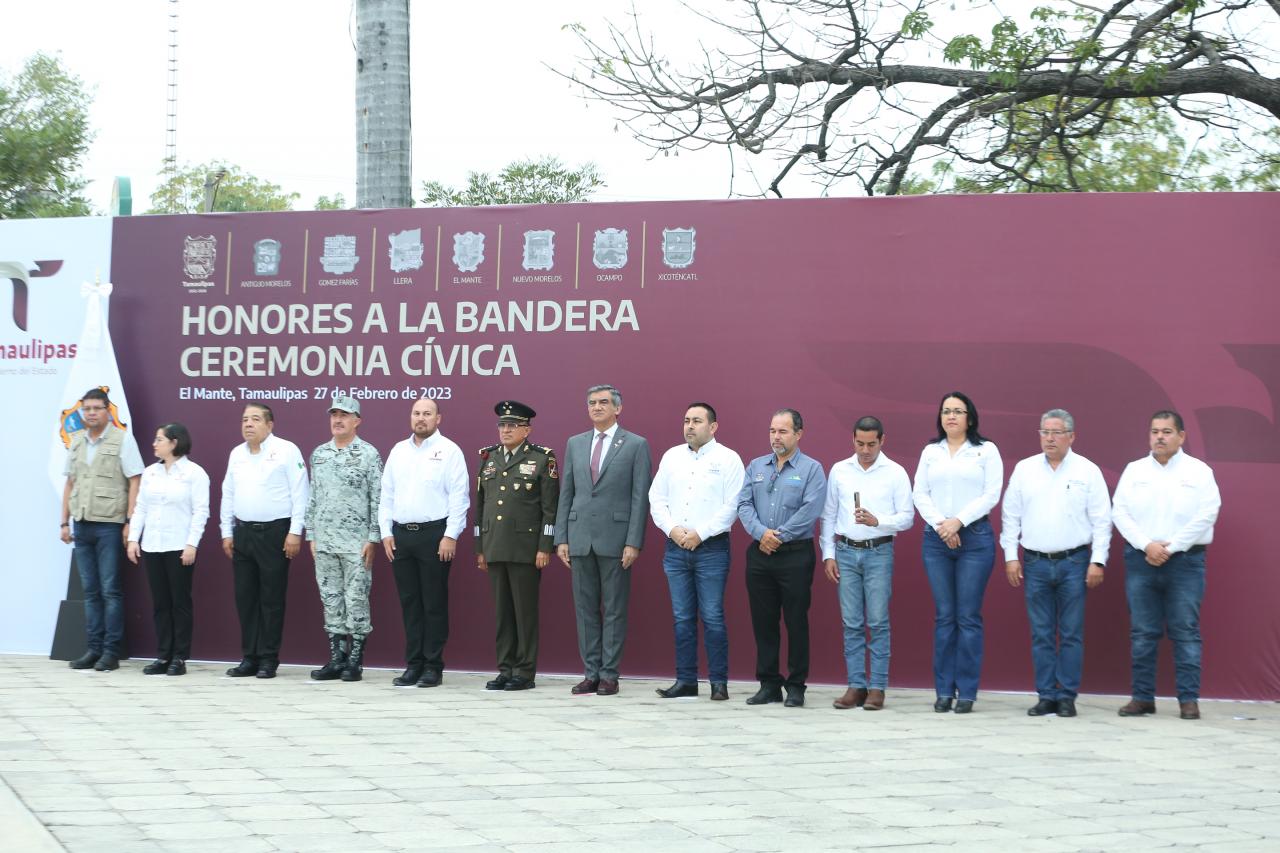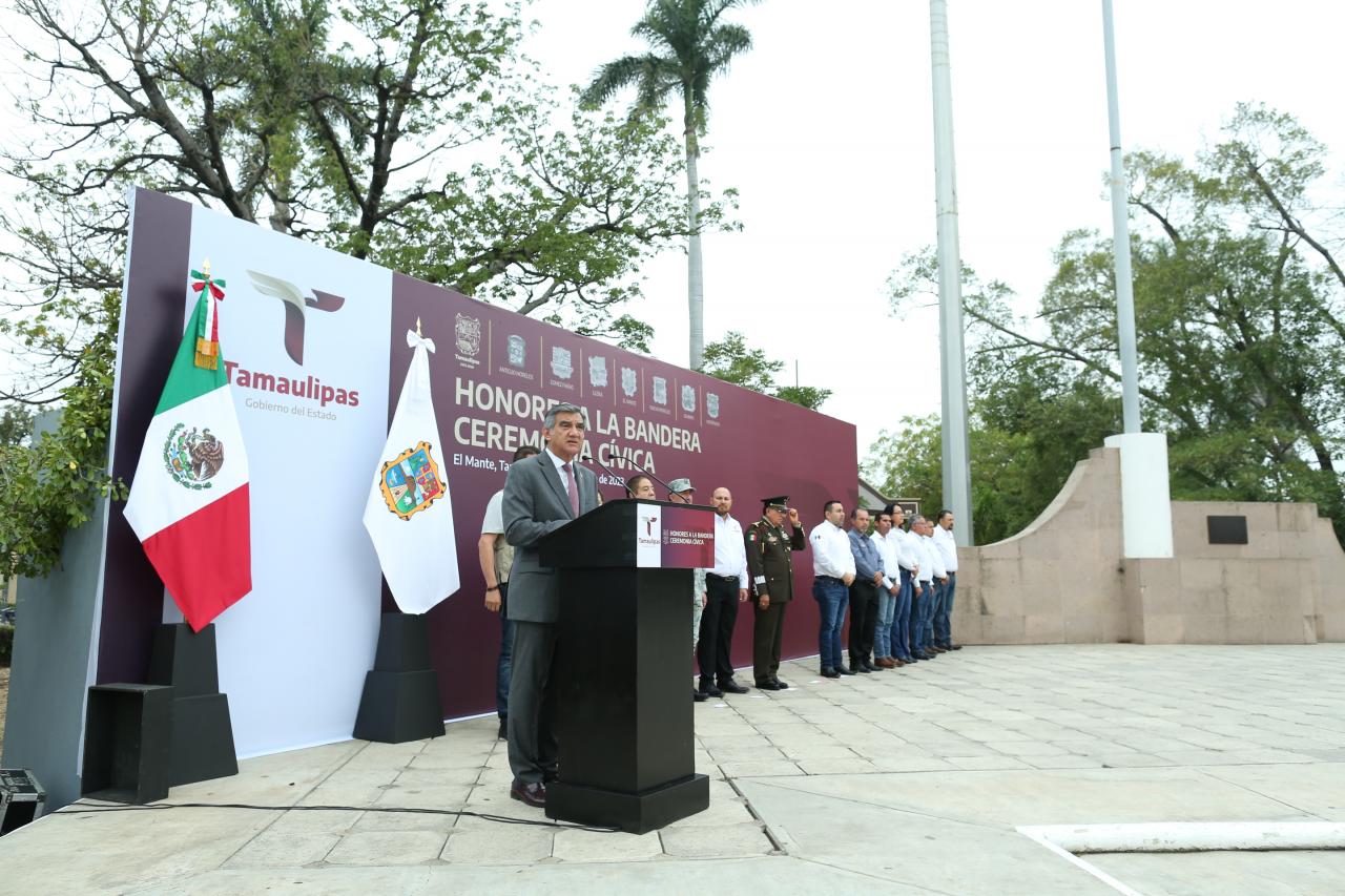 Al encabezar la ceremonia cívica de honores en la plaza principal de Ciudad Mante y acompañado por las y los alcaldes de Gómez Farías, Llera, Nuevo Morelos, Ocampo y Antiguo Morelos, el gobernador del Estado destacó que en Tamaulipas, se acabaron los tiempos de conflictos y envidias para trabajar con una concordia fraternal entre todos los tamaulipecos y para un bienestar justo y equitativo para todos.