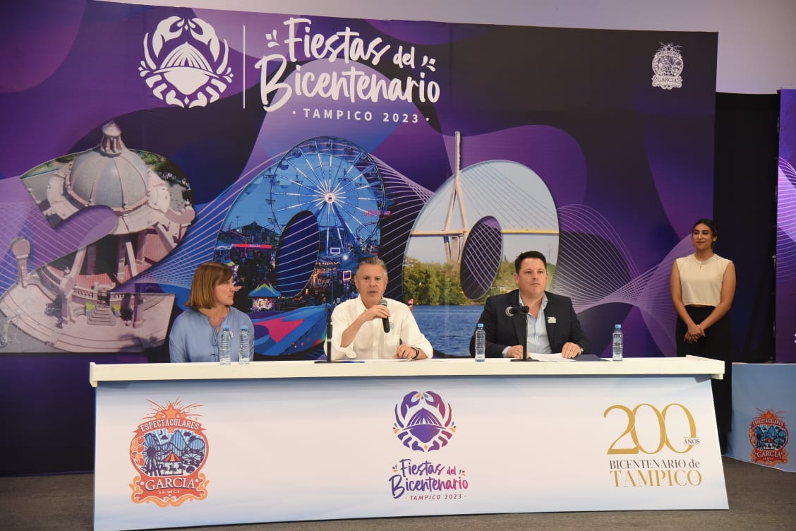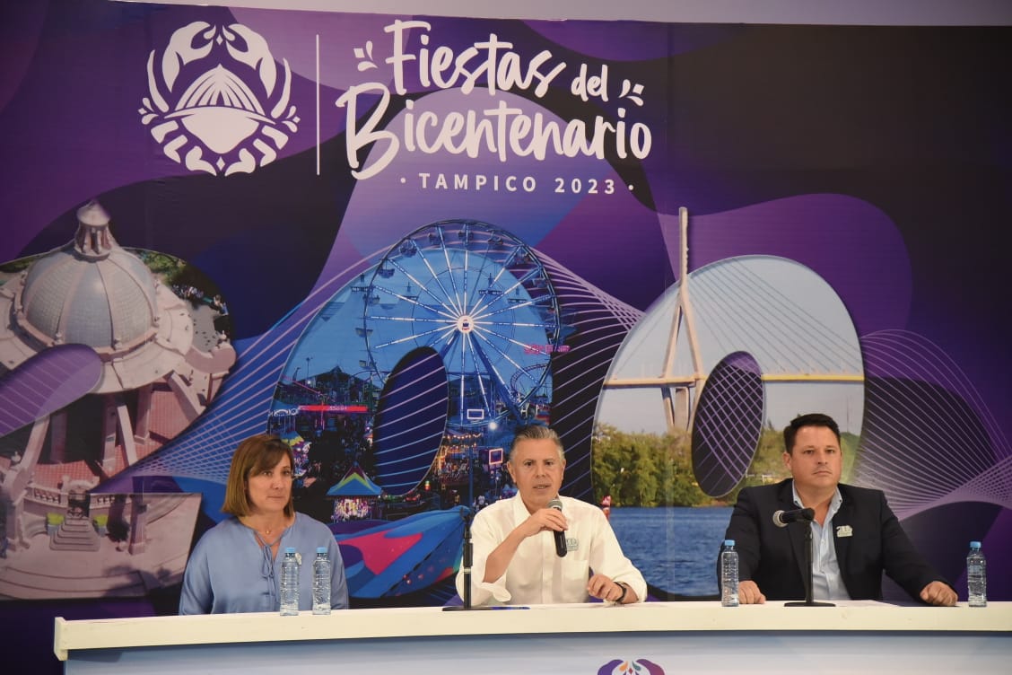 Del 31 de marzo al 16 de abril se llevarán a cabo las Fiestas del Bicentenario Tampico 2023 informó, este lunes, el Presidente Municipal Chucho Nader al encabezar el anuncio oficial de esta tradicional celebración junto a la Diputada Federal Rosa González Azcárraga y el empresario de espectáculos Michel Rivero, representante de la firma Espectaculares García.
