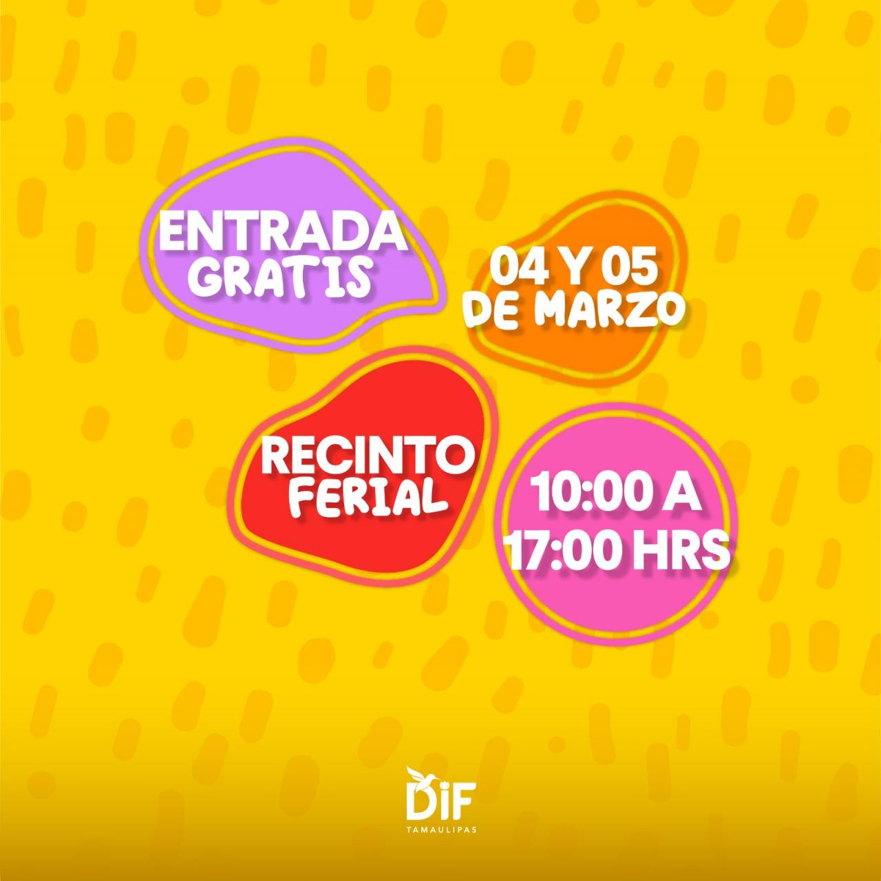 La doctora María de Villarreal, presidenta del DIF Tamaulipas, está invitando a todas las familias para que asistan los días sábado 4 y domingo 5 de marzo del presente año, en un horario de 10 de la mañana a 5 de la tarde en el Recinto Ferial de esta ciudad.