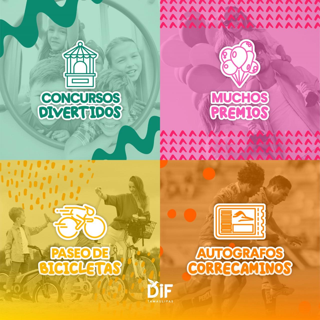 El director general del DIF estatal, Geancarlo Bonetta Cavazos, mencionó que los asistentes podrán disfrutar de juegos mecánicos, brincolines, concursos, premios, lotería tradicional mexicana, pinta caritas, show artístico, venta de antojitos, así como un rally y paseos en bicicletas.