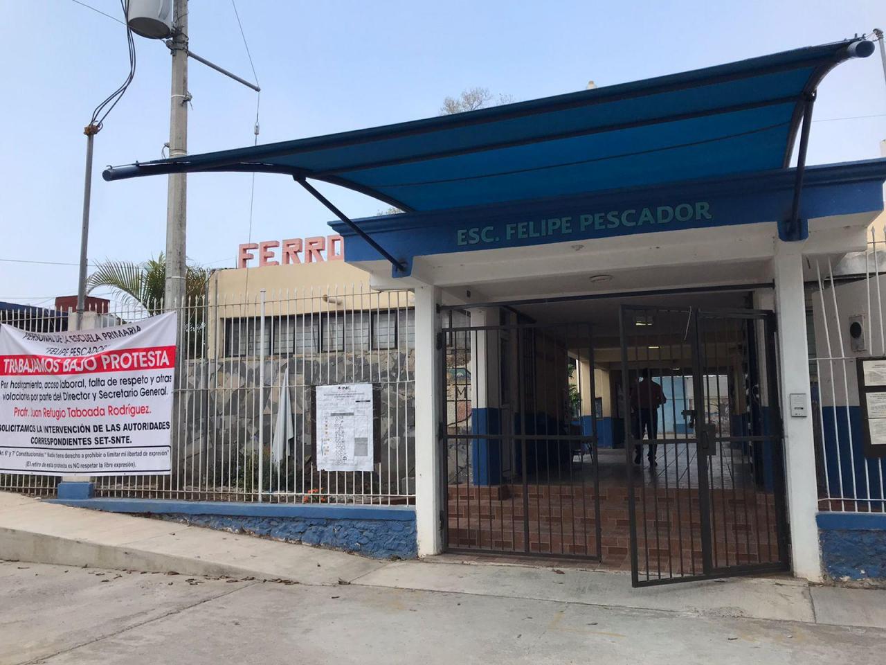 Esta mañana, la mitad de los maestros de la Escuela Primaria Felipe Pescador se manifestaron en contra de su director Juan Refugio Taboada Rodríguez.