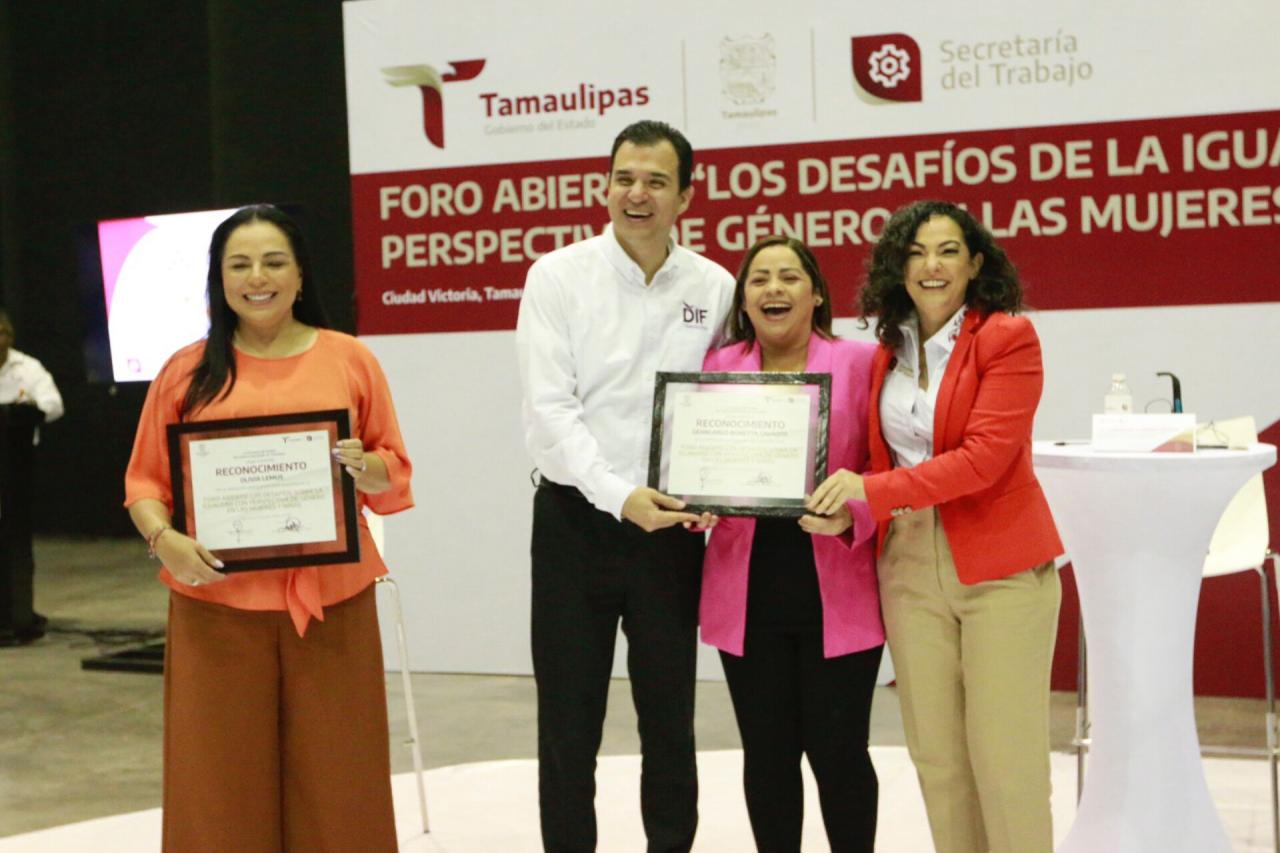 Al respecto la secretaria del Trabajo Olga Patricia Sosa Ruíz habló sobre la sinergia del Gobierno del Estado, con el Gobierno Federal y el impulso legislativo del Congreso de La Unión, lo cual ha logrado concretar acciones en pro de la igualdad de derechos, tanto para las mujeres como para los varones, lo que va de la mano con el gobierno humanista de Américo Villarreal, quien estuvo representado en este evento por la secretaria de Bienestar Social Verónica Adriana Aguirre de Los Santos.