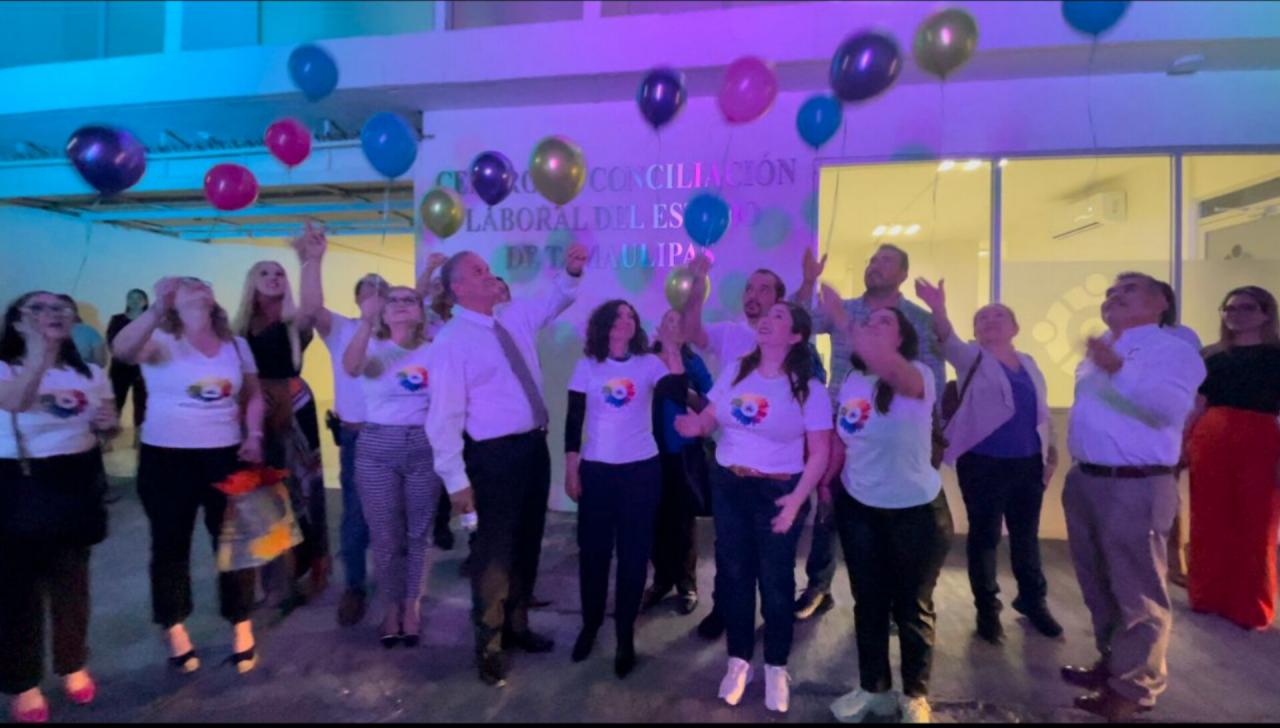 Finalmente, la fachada del Centro de Conciliación Laboral de Tamaulipas, fue iluminada con esos tres colores y se soltaron globos al cielo, en señal de solidaridad con las personas que padecen alguna de las enfermedades raras.