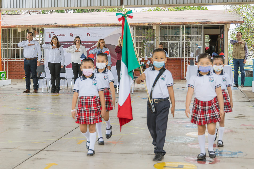 Esta actividad, estuvo presidida por la secretaria de Educación en Tamaulipas, Lucía Aimé Castillo Pastor, quien reconoció el trabajo realizado por parte de las madres de familia, docentes y personal de apoyo que estuvieron involucrados en la organización de esta ceremonia cívica.