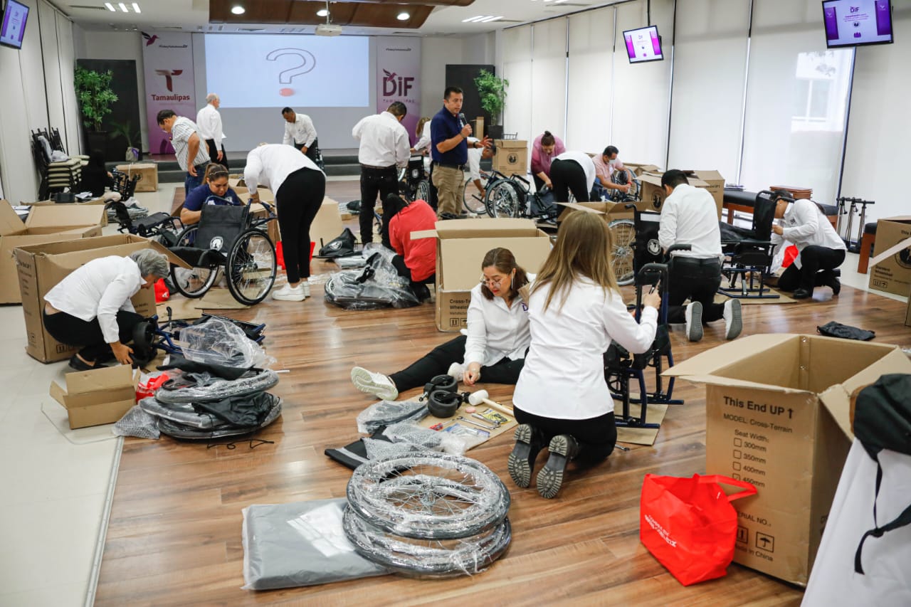 Ciudad Victoria, Tamaulipas.- Abriendo un vínculo de colaboración entre el Sistema DIF Tamaulipas que preside la doctora María de Villarreal y la organización LDS Charities, se llevó a cabo la capacitación sobre el armado y uso de más de 400 apoyos entre sillas de ruedas y aparatos funcionales que se recibieron como donación.