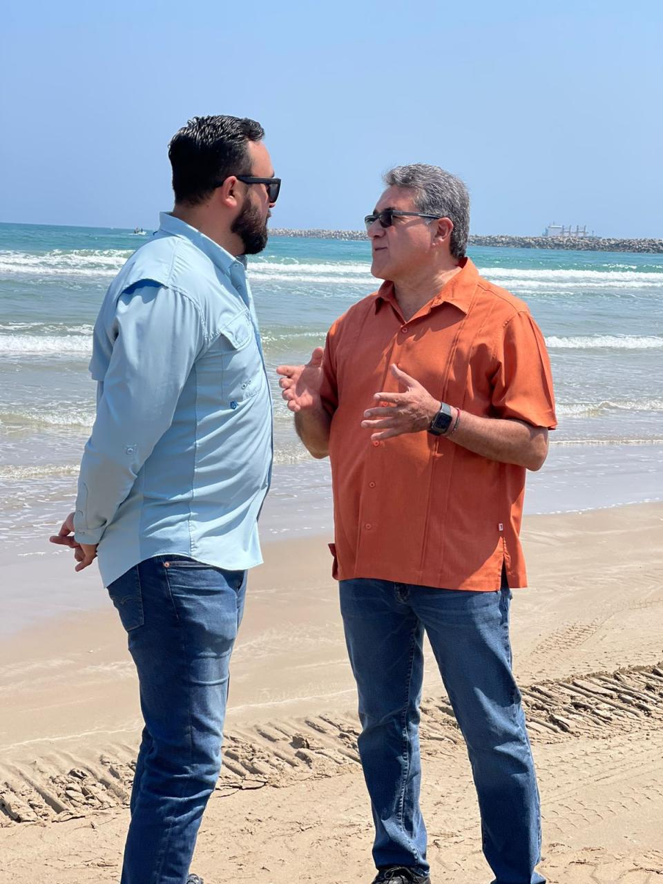 Altamira, Tamaulipas. Con motivo de la próxima temporada vacacional de Semana Santa en Tamaulipas, el secretario de Turismo, Benjamín Hernández Rodríguez, realizó un recorrido en Playa Tesoro en compañía del presidente municipal de Altamira Armando Martínez Manríquez, en donde el titular de esta Secretaría refrendó el apoyo y el compromiso que el gobernador Américo Villareal Anaya tiene para el sector turístico.