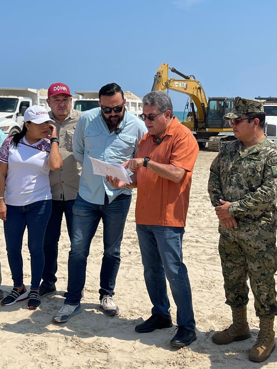 Durante el recorrido de supervisión por playa Tesoro, se le informó al secretario el plan y las acciones que se están realizando en el municipio altamirense para estar listos y recibir a los turistas en Playa Tesoro la próxima Semana Santa, que incluye la instalación de palapas, estacionamiento, rehabilitación de accesos, área para vendedores y torres salvavidas.