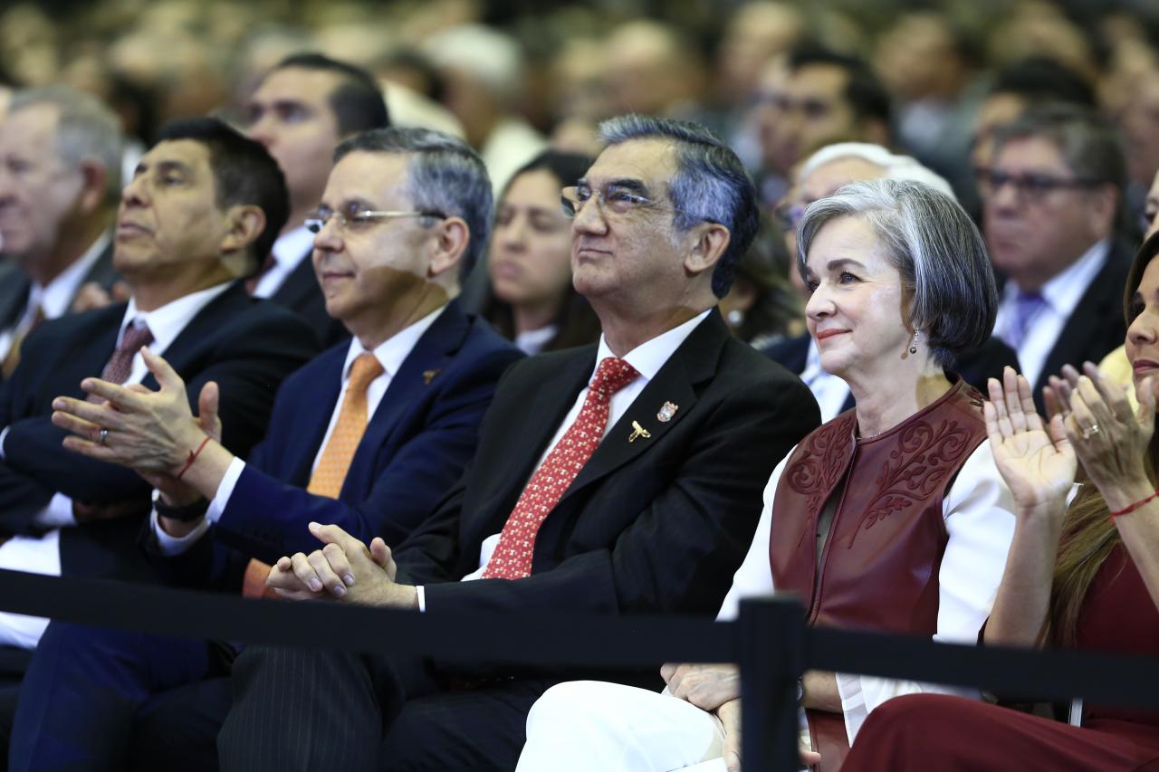 Ciudad Victoria, Tamaulipas.- En el Primer Informe de Gobierno presentado por el doctor Américo Villarreal, al rendir cuentas ante el Congreso del Estado como lo marca la ley y al dirigir un mensaje al pueblo de Tamaulipas, el mandatario estatal destacó la labor altruista que todos los días realiza desde el DIF Tamaulipas la doctora María de Villarreal.