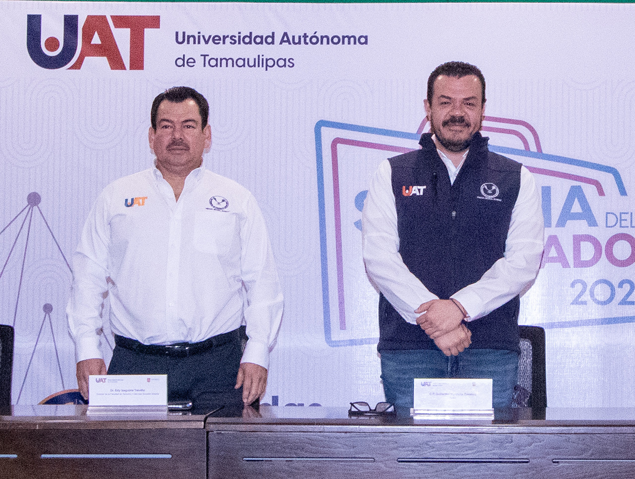 Acompañado del Dr. Edy Izaguirre Treviño, director de la Facultad de Derecho y Ciencias Sociales Victoria, el contador Guillermo Mendoza Cavazos refirió que se busca abrir foros específicos para que el alumnado pueda intercambiar ideas con diferentes universidades, y de manera especial quienes estudian negocios internacionales, considerando la importancia que tiene esta área en la actualidad.