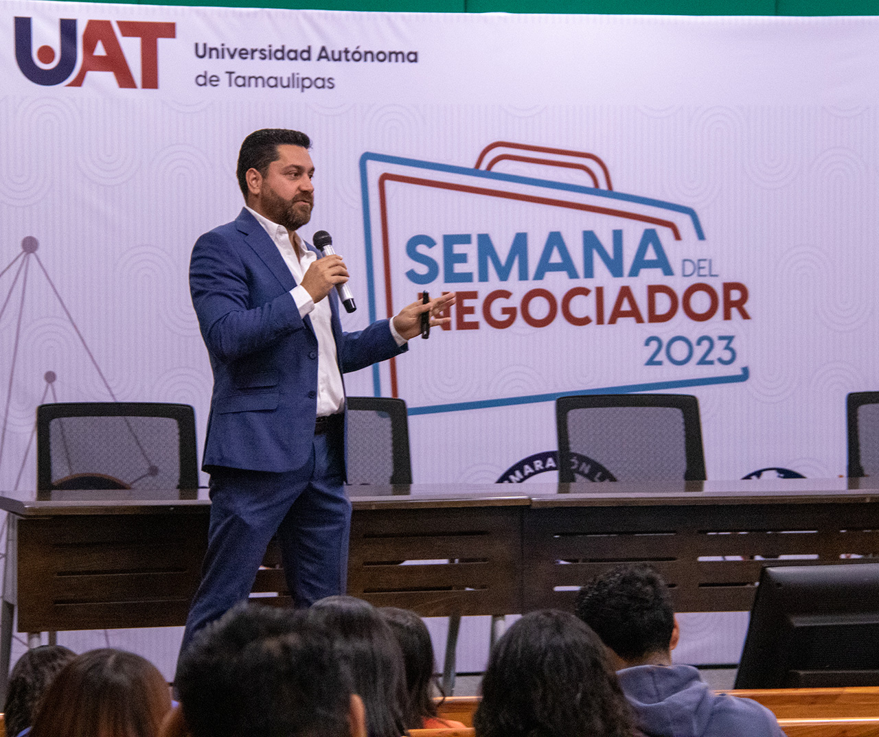 “La intención de la UAT con su nuevo modelo educativo es ir fortaleciendo cada una de las carreras con una serie de actividades que podamos poner a su disposición para tratar de enriquecer el perfil de cada uno de ustedes”, dijo el rector a la comunidad estudiantil.