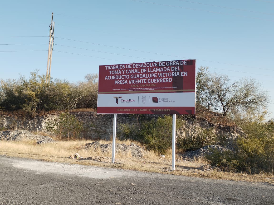 Ciudad Victoria, Tamaulipas.- Con un importe asignado de 14 millones 213 mil 399 pesos, la Secretaría de Obras Públicas realiza los trabajos de desazolve de la obra de toma del canal de llamada, del acueducto Guadalupe Victoria en la Presa Vicente Guerrero, en el municipio de Casas.