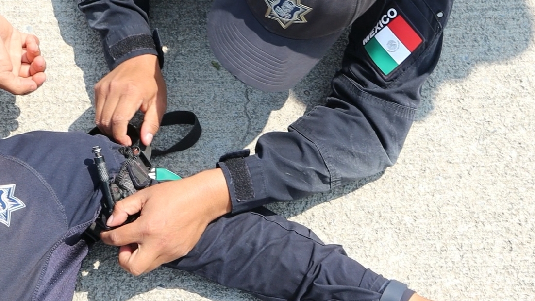 “Es sobre cómo implementar el uso del torniquete para poder salvarle, la propia vida a ellos y la del compañero, y bueno, en caso de que se necesite en algún riesgo en la sociedad puedan acudir a apoyar”, explicó el instructor Isaías Rafael Ordaz, policía comisionado a la Universidad de Seguridad y Justicia de Tamaulipas (USJT).