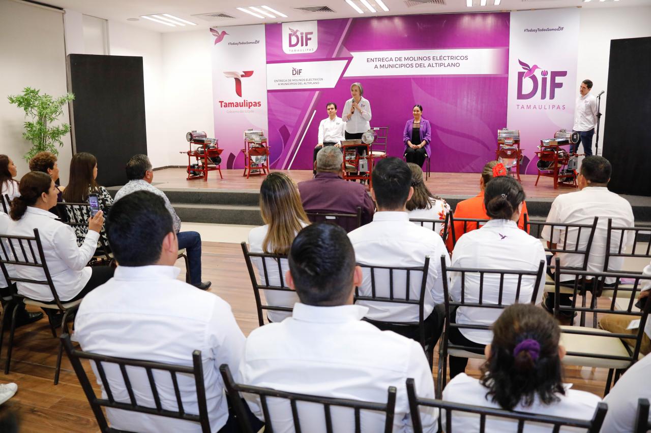 Ciudad Victoria, Tamaulipas.- Como un compromiso contraído entre el Gobierno del Estado y el DIF Tamaulipas, la presidenta del organismo María de Villarreal, hizo entrega de molinos eléctricos en beneficio de las personas que más lo necesitan, de los cinco municipios que integran la región del altiplano tamaulipeco.
