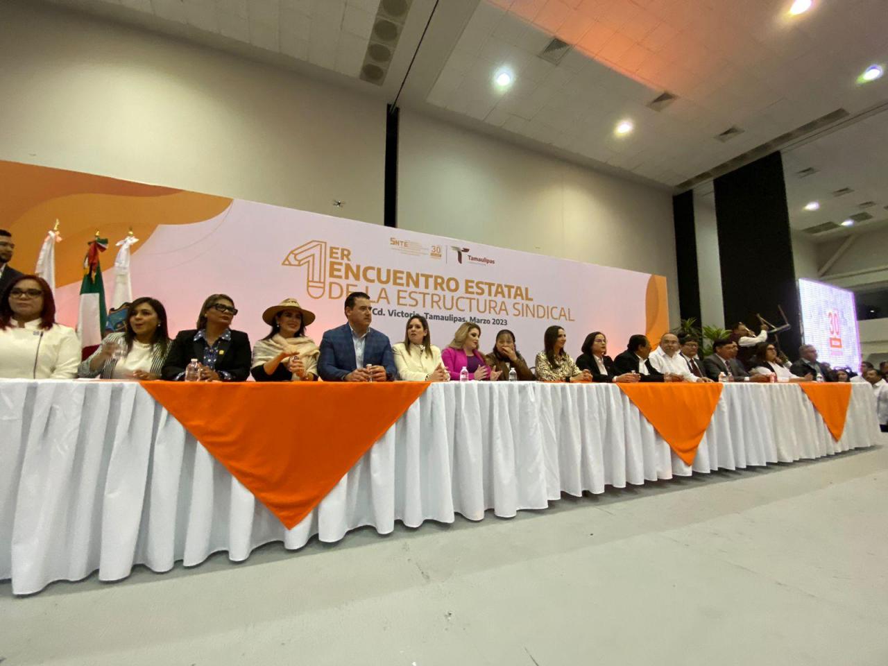 Ciudad Victoria, Tamaulipas.-Más de 970 comités ejecutivos delegacionales se dieron cita en el Polyforum de Ciudad Victoria, para escuchar el mensaje del líder de la sección 30 del SNTE, Arnulfo Rodriguez Treviño, en el primer encuentro estatal de estructura sindical.
