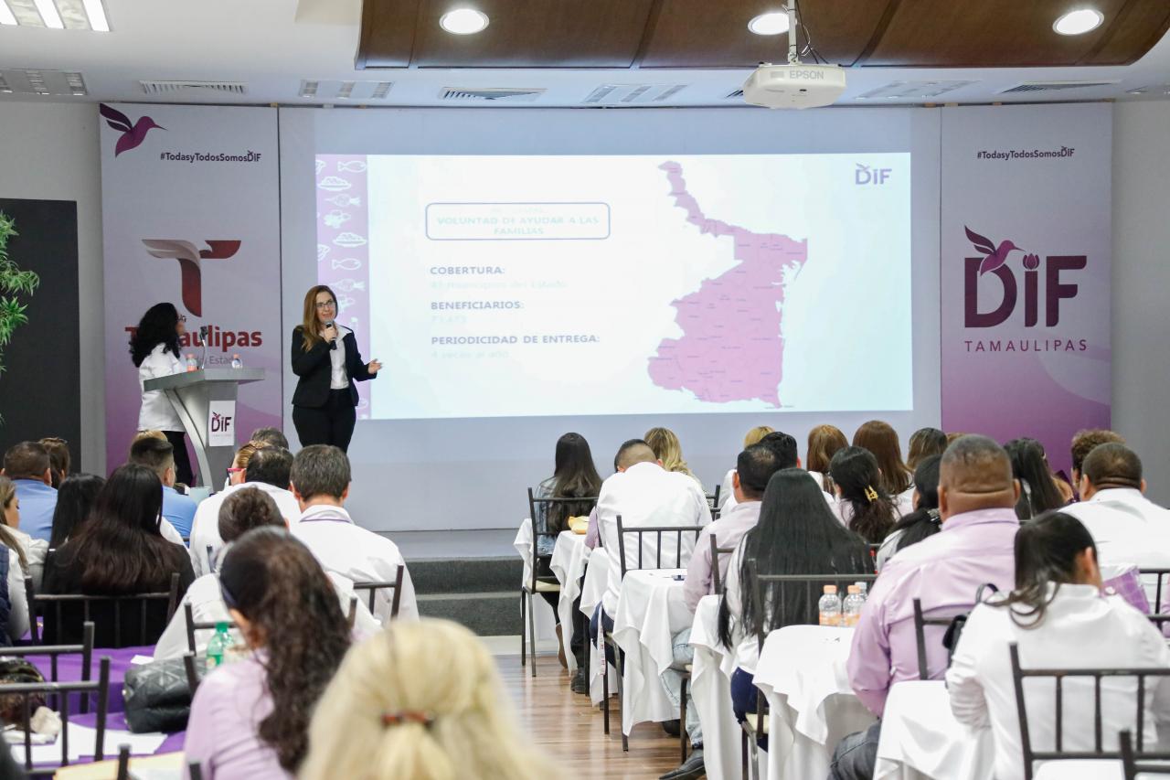 Ciudad Victoria, Tamaulipas. El Sistema DIF Tamaulipas que preside la doctora María Santiago de Villarreal, a través de la Dirección de Programas Alimentarios, llevó a cabo la reunión con coordinadores alimentarios de los 43 municipios de la entidad.