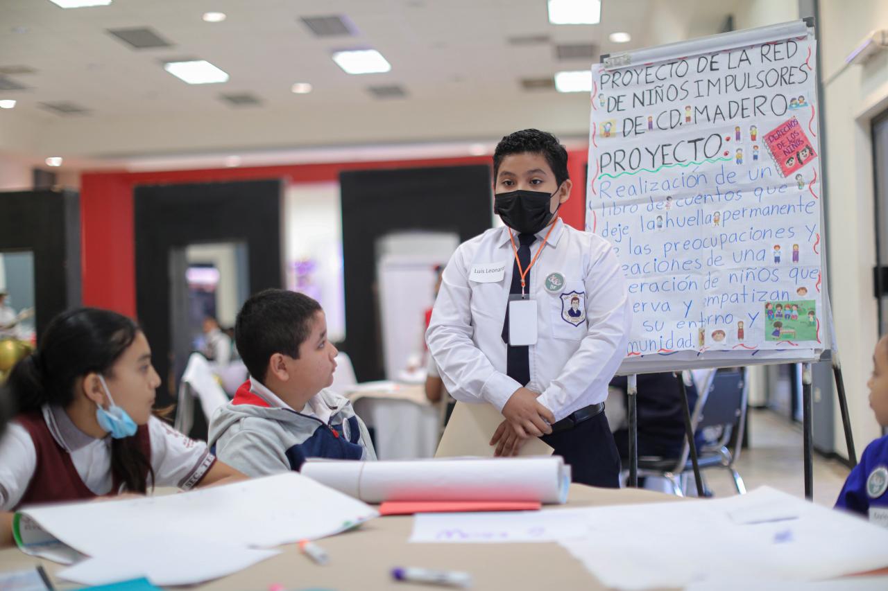 Ciudad Victoria, Tamaulipas. Con el propósito de fomentar el diálogo entre los estudiantes de nivel básico a través del intercambio de ideas y puntos de vista sobre los derechos de niñas, niños y adolescentes, se llevó a cabo el “Encuentro Estatal de los Impulsores de la Transformación de Tamaulipas 2023”, con la participación de la Dirección de Fortalecimiento Familiar del DIF Tamaulipas, que preside la doctora María Santiago de Villarreal.
