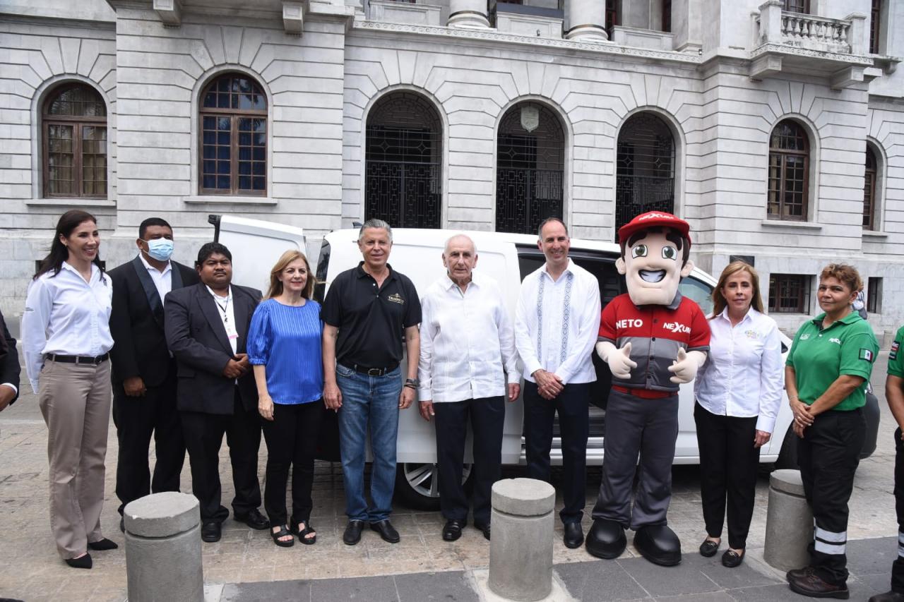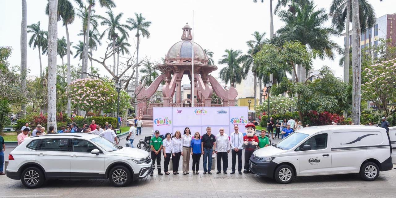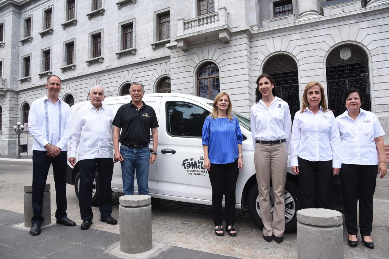 En una significativa ceremonia efectuada en la Plaza de Armas, el Presidente municipal Chucho Nader y su esposa Aida Feres de Nader, titular del Sistema DIF Tampico agradecieron el generoso gesto del corporativo encabezado por el empresario José Ángel García Hernández y sus hijos José Ángel y María de Lourdes García Elizondo.